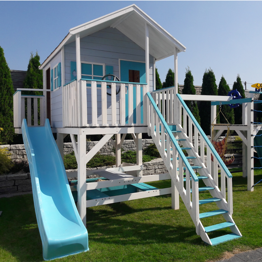 Výška podesty a věže domku: 150 cm pro bezpečné a pohodlné hraní.