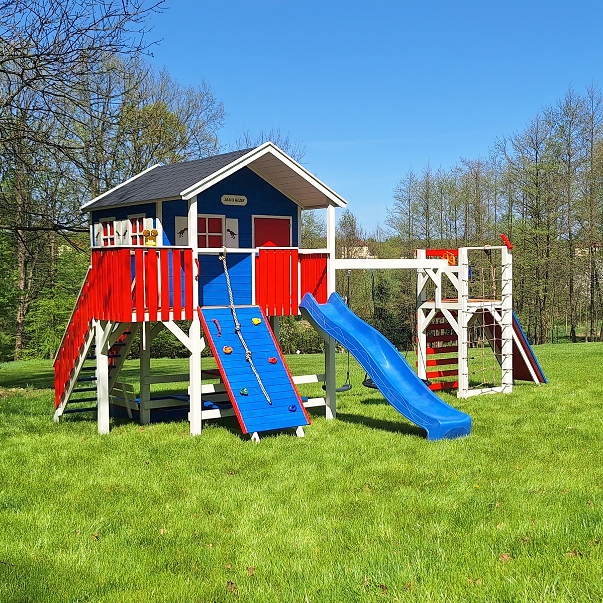 Hrací domeček „Obláček“ představuje ideální místo pro hraní, hry a aktivní trávení času, kde si každé dítě najde něco pro sebe. Tato rozsáhlá sestava poskytuje našim dětem široké možnosti pro rozvoj fantazie a pohybových dovedností, zatímco rodičům dává záruku, že svým pokladům poskytují bezpečné a podnětné prostředí. Díky svému komplexnímu designu a bohaté výbavě se stanete svědky nekonečných hodin radosti a smíchu. Připravte se, že se i vy dospělí budete chtít připojit k dětským dobrodružstvím!