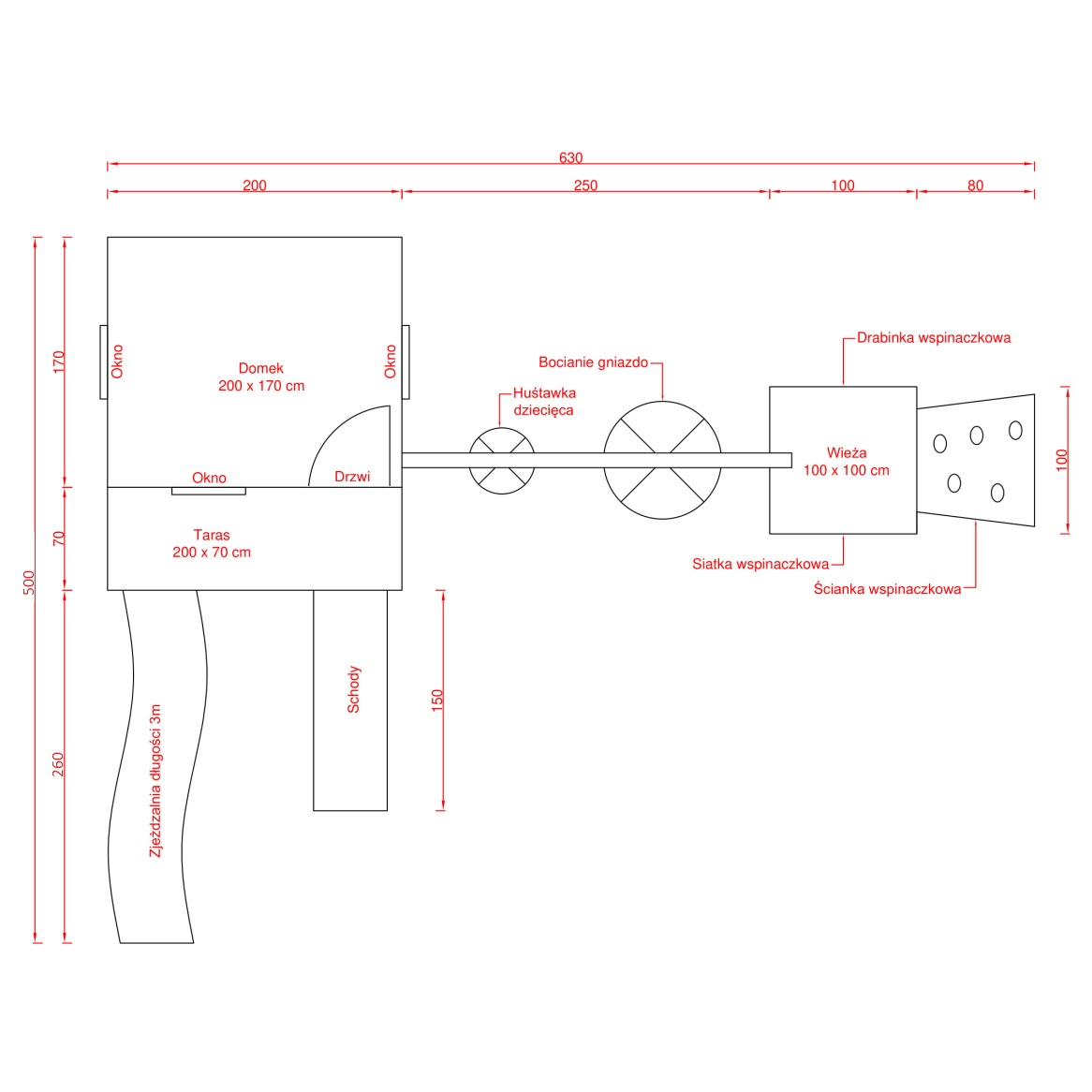 - Výška plošiny domu a věže je 150 cm, což nabízí dostatečný prostor pro hru.