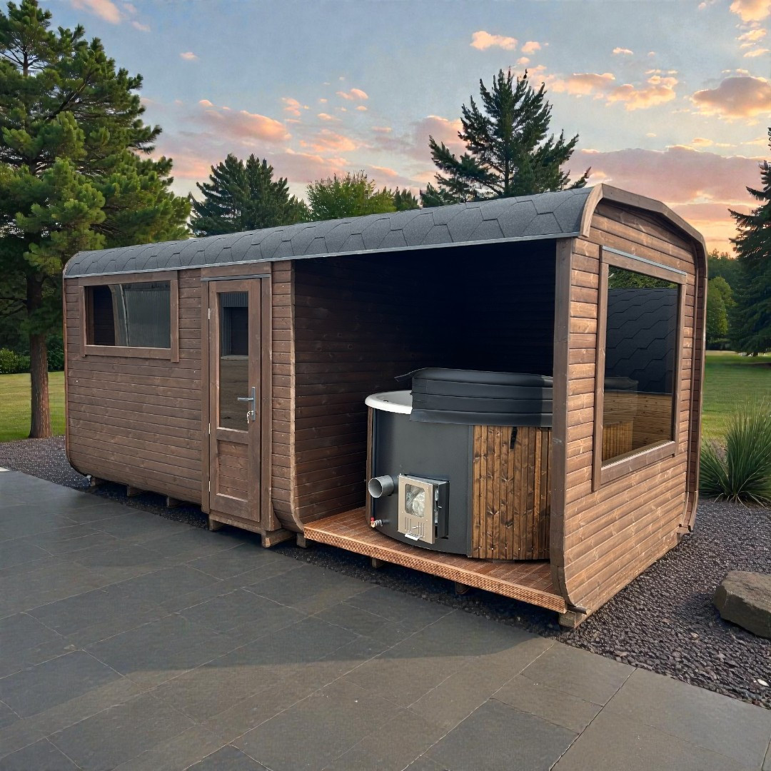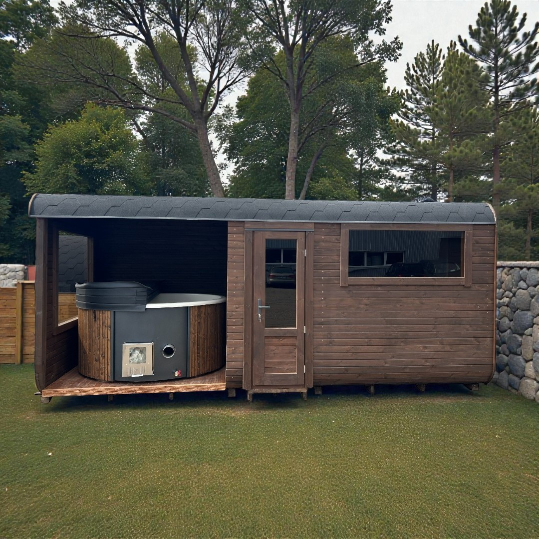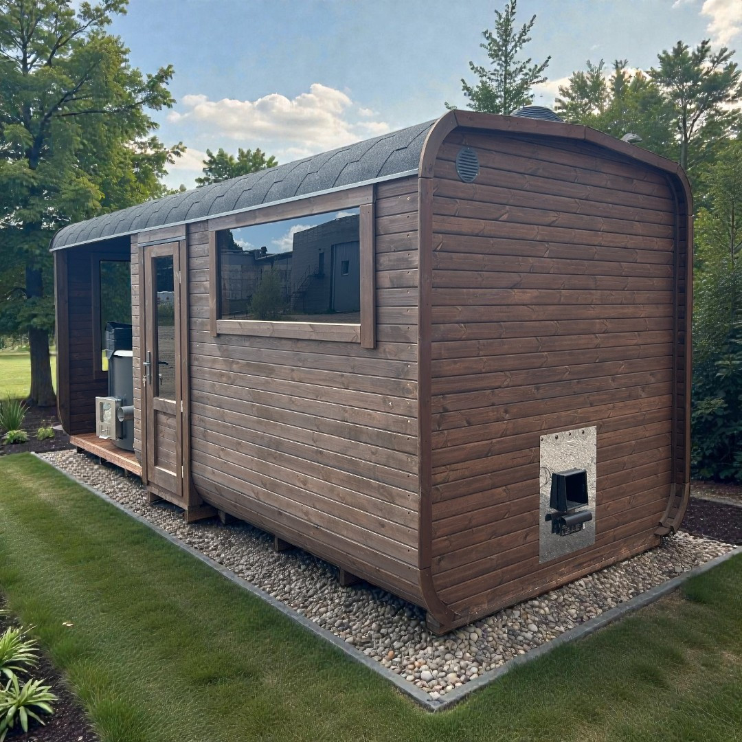 Tuto stylovou saunu si můžete nakonfigurovat s kamny podle svého výběru. Při vytváření objednávky máte možnost zvolit variantu úplně bez kamen (pokud už nějaké máte) nebo za příplatek s kamny na dřevo, nebo s elektrickými kamny.