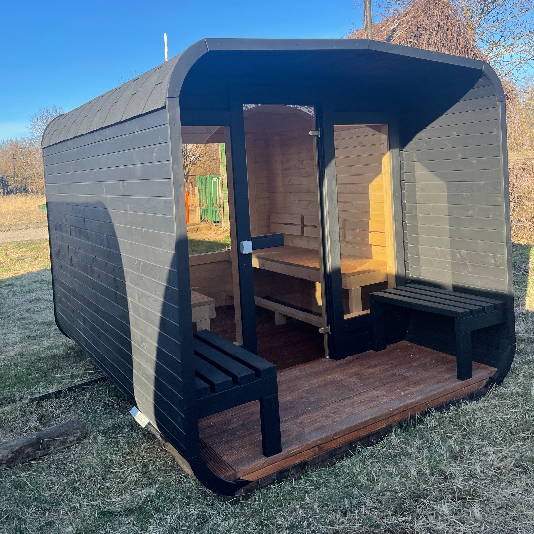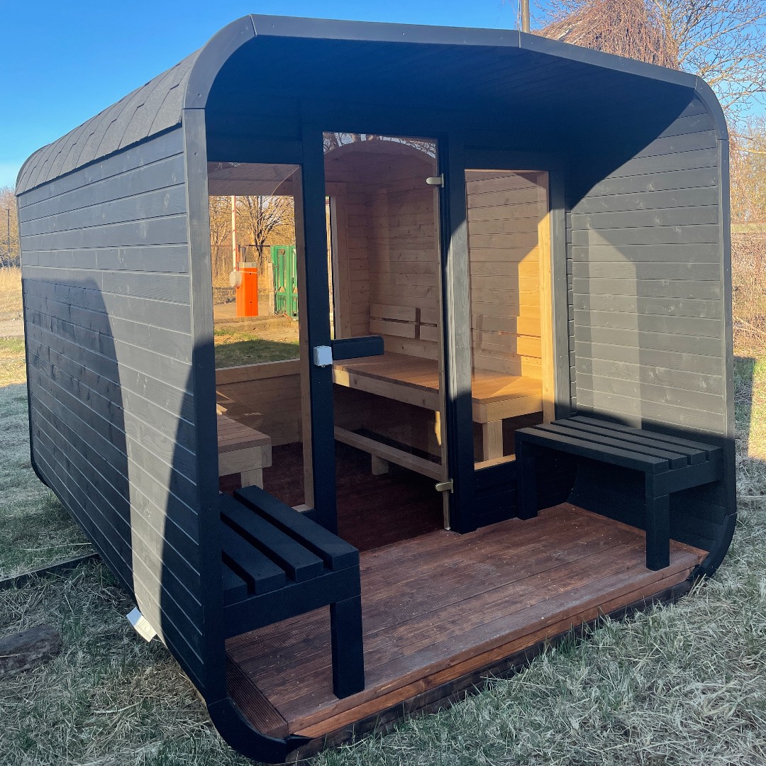 Tuto stylovou saunu si můžete nakonfigurovat s kamny podle svého výběru. Při vytváření objednávky máte možnost zvolit variantu úplně bez kamen (pokud už nějaké máte) nebo za příplatek s kamny na dřevo, nebo s elektrickými kamny.