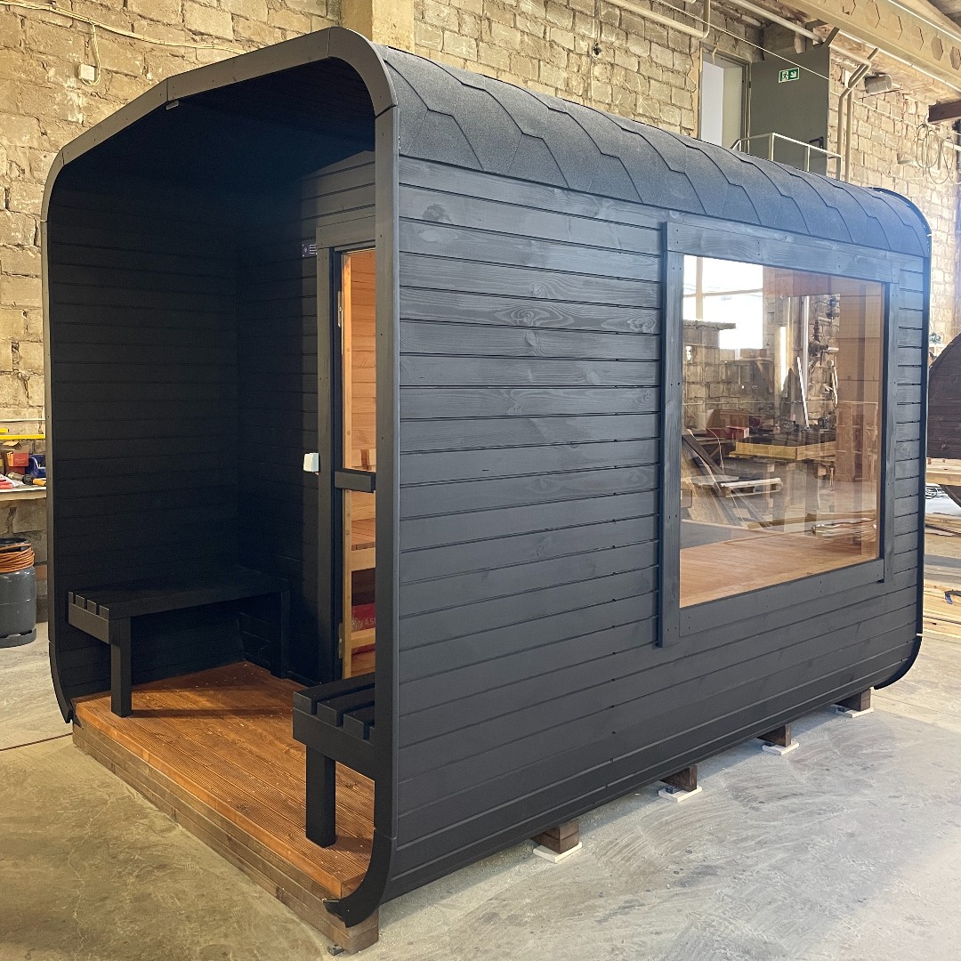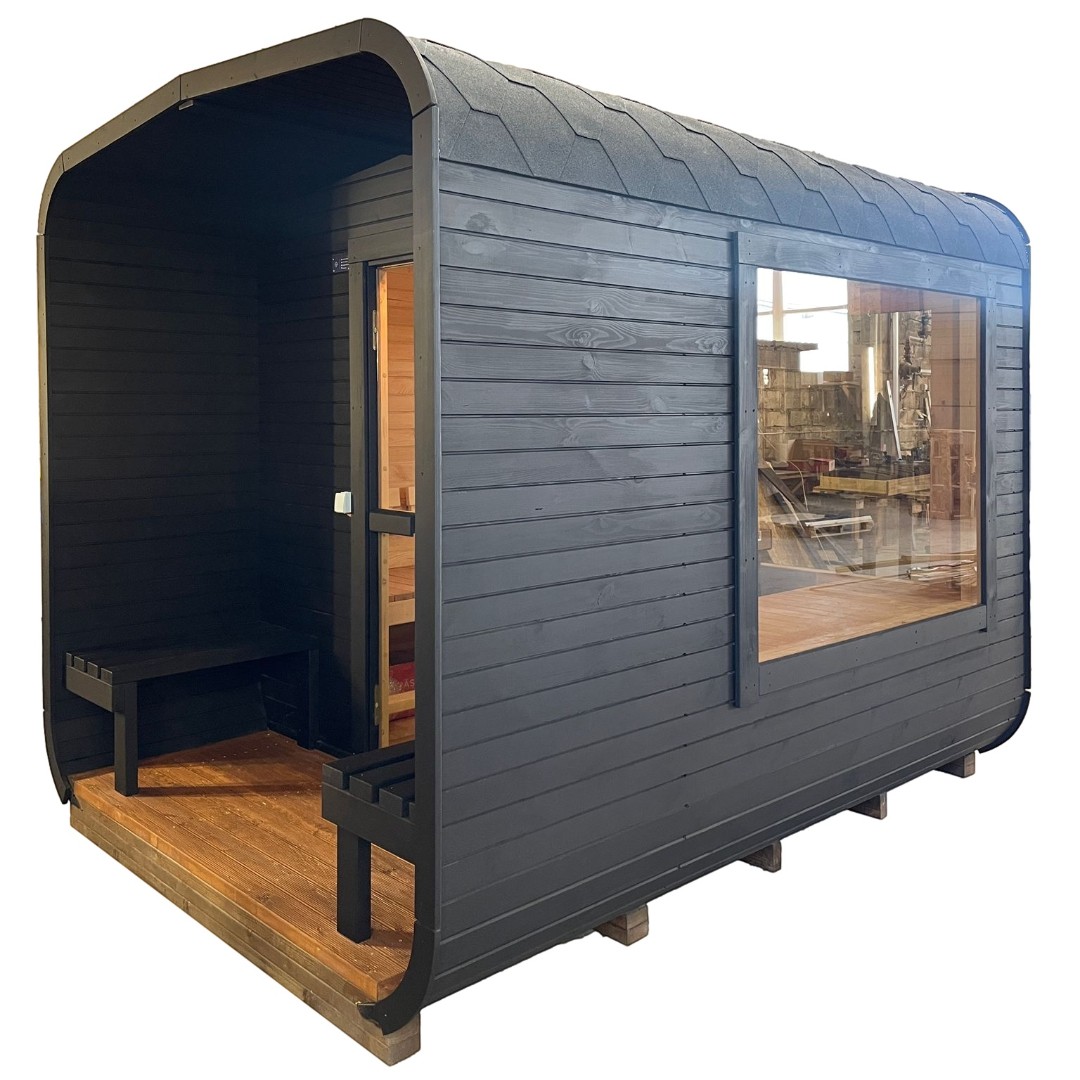Topení není součástí standardní výbavy – na výběr jsou kamna na tuhá paliva nebo elektrická kamna značky HARVIA a HUUM. Okna lze doplnit na přání. Zakázkové barvy střechy či lakování jsou k dispozici za příplatek.