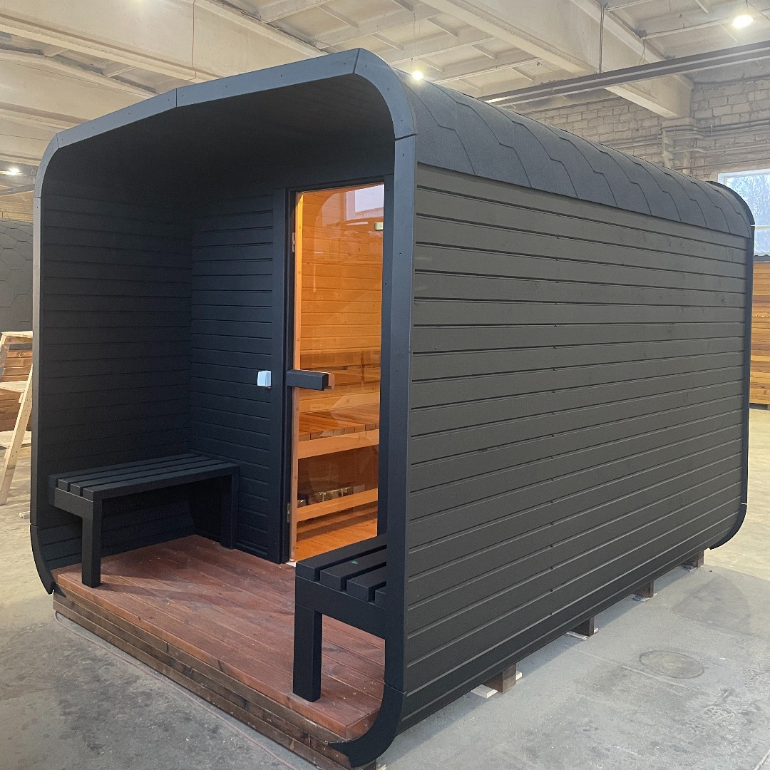 Standardní provedení zahrnuje vnější nátěr ve variantách teak, hnědá, šedá nebo bezbarvý nátěr. Střecha je pokryta asfaltovými šindeli v černé barvě. Sauna je vybavena tónovanými skleněnými dveřmi, lavicemi z termodřeva s opěradlem v saunové místnosti a lavicemi ze smrkového dřeva na terase. Podlaha v sauně je z nenatřených terasových prken, zatímco terasa má elegantní teakový nátěr.