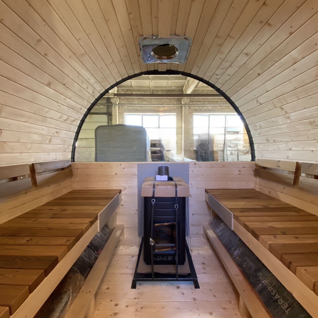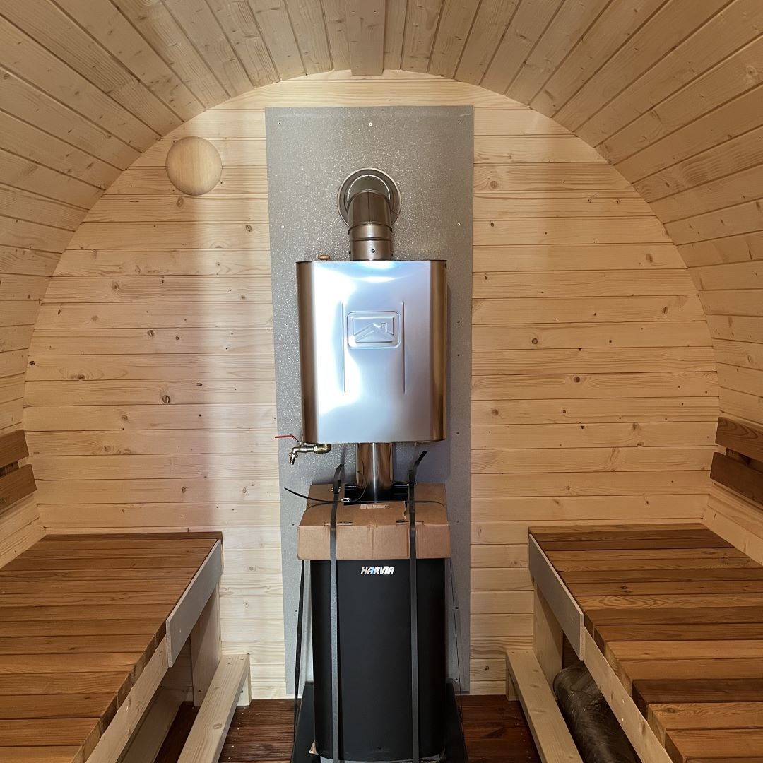 Tuto stylovou saunu si můžete nakonfigurovat s kamny podle svého výběru. Při vytváření objednávky máte možnost zvolit variantu úplně bez kamen (pokud už nějaké máte) nebo za příplatek s kamny na dřevo, nebo s elektrickými kamny.