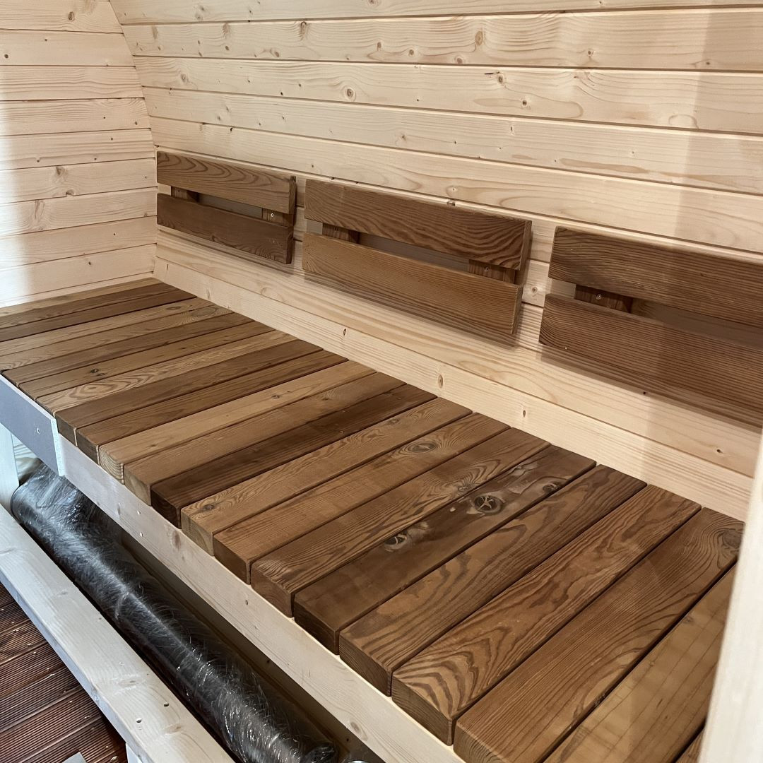 Na výrobu našich saun lze také použít materiál Thermowood®, což je tepelně upravená severská borovice, která díky zapečení v sušárně při 200°C získá výrazně lepší vlastnosti než běžné dřevo. Použití severské borovice je také samo o sobě výhodné díky pevnější struktuře pomalu rostoucích severních dřevin. Výsledkem je násobně delší doba životnosti, stálobarevnosti, typická vůně pečeného dřeva a jeho typická medově hnědá barva.