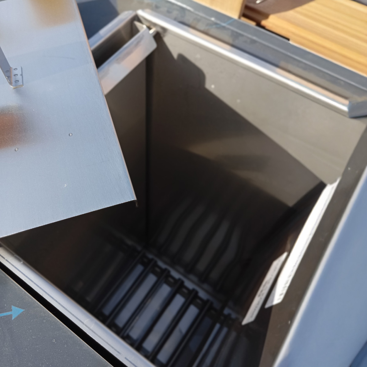 - Výkonné interní topení: Srdcem vířivky je integrované topeniště z vysoce odolné nerezové oceli třídy AISI316, které zajišťuje efektivní a rychlý ohřev vody. Součástí je i 2 m vysoký komín, výbava pro čištění topeniště a teploměr.