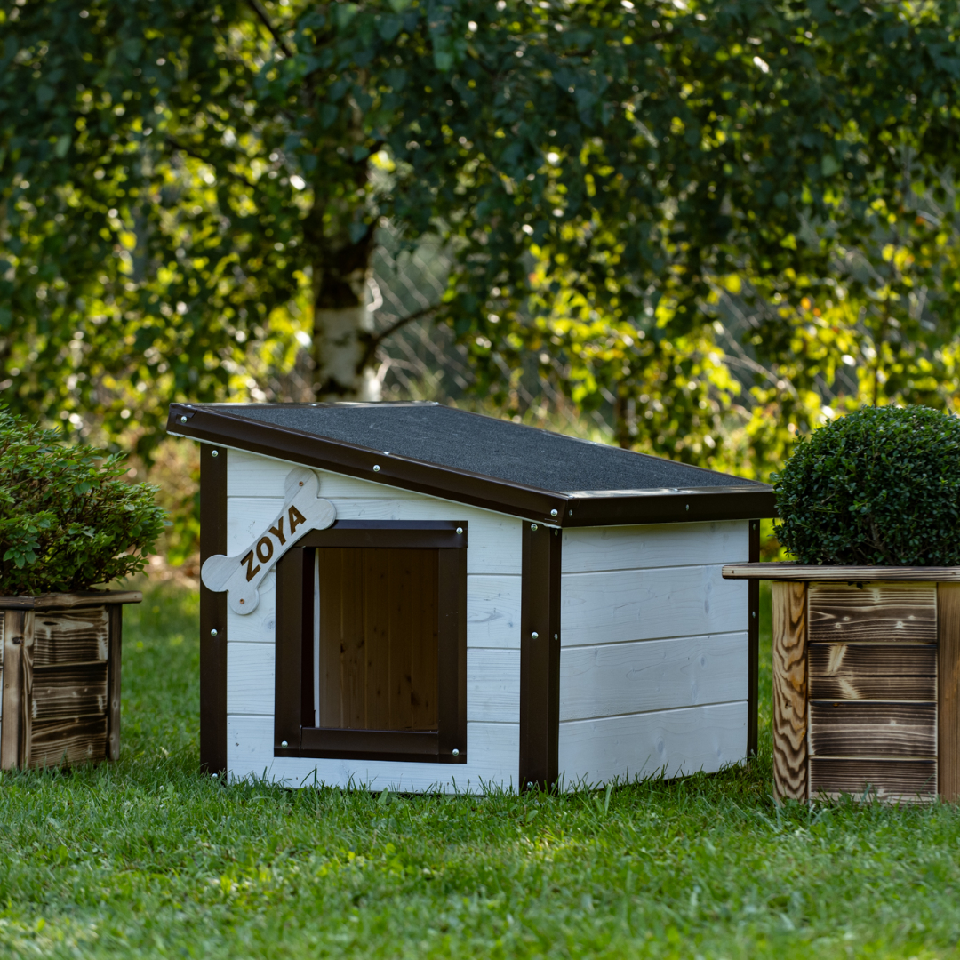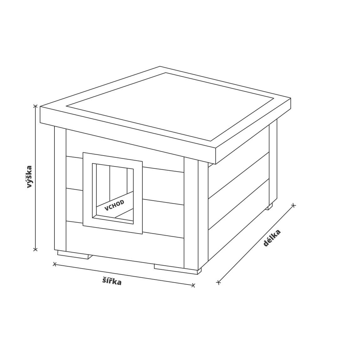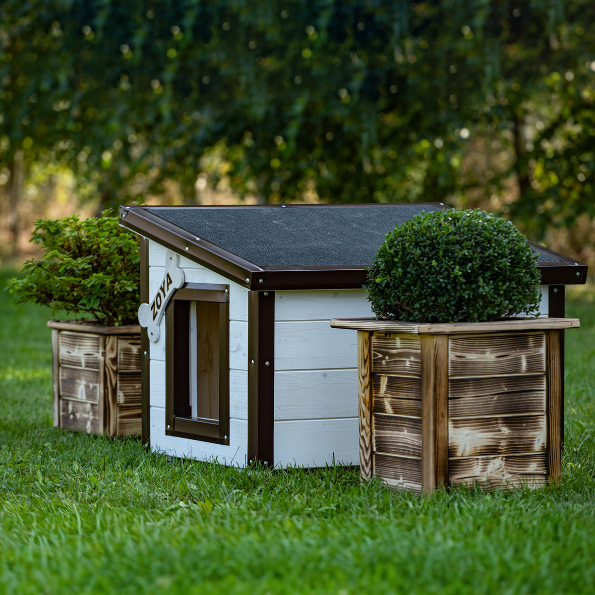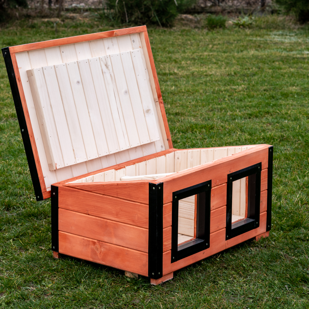 Ekologické ošetření: Bouda je ošetřena ekologickými barvami na bázi přírodních olejů nebo vody, šetrnými k přírodě i vašemu pejskovi.