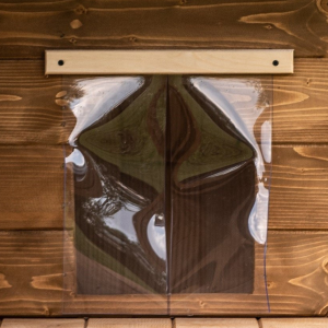 PVC závěs: Namontovaný nad vchodem, chrání před tepelnými ztrátami a studenými poryvy větru zvenčí. Vyroben z pružného a průhledného PVC materiálu.