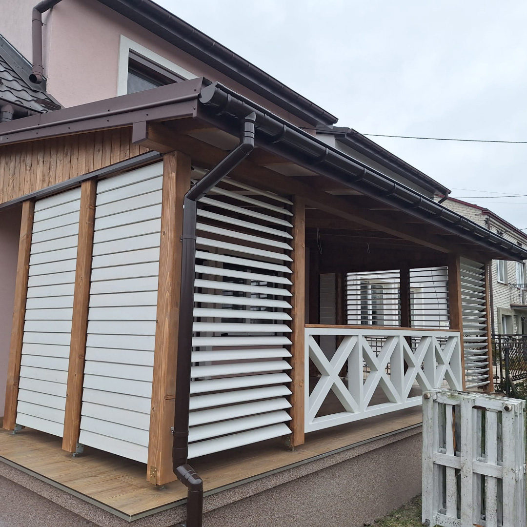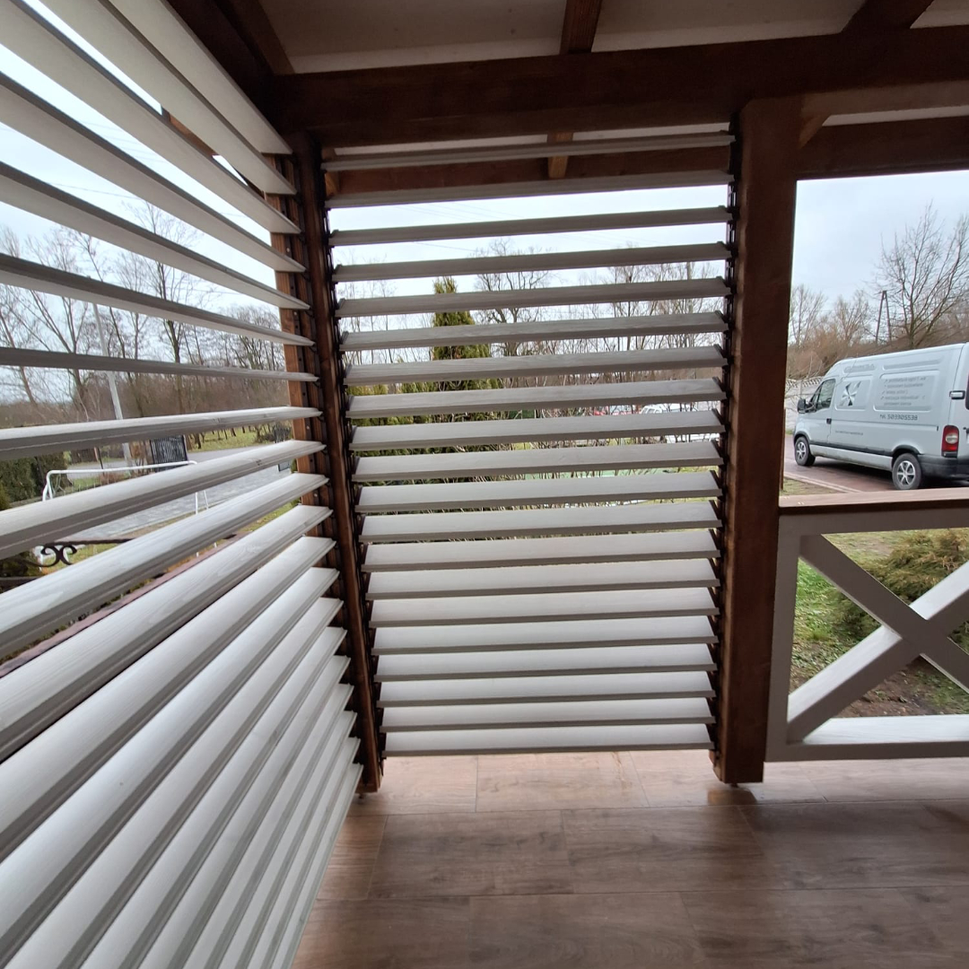 Naše Dřevěné otočné žaluzie představují ideální řešení pro každého, kdo hledá efektivní a elegantní způsob, jak ovládat svůj venkovní prostor. Systém byl navržen tak, aby vám umožnil otevírat a zavírat žaluzie kdykoli budete chtít, čímž získáte plnou kontrolu nad prostředím na vaší terase.