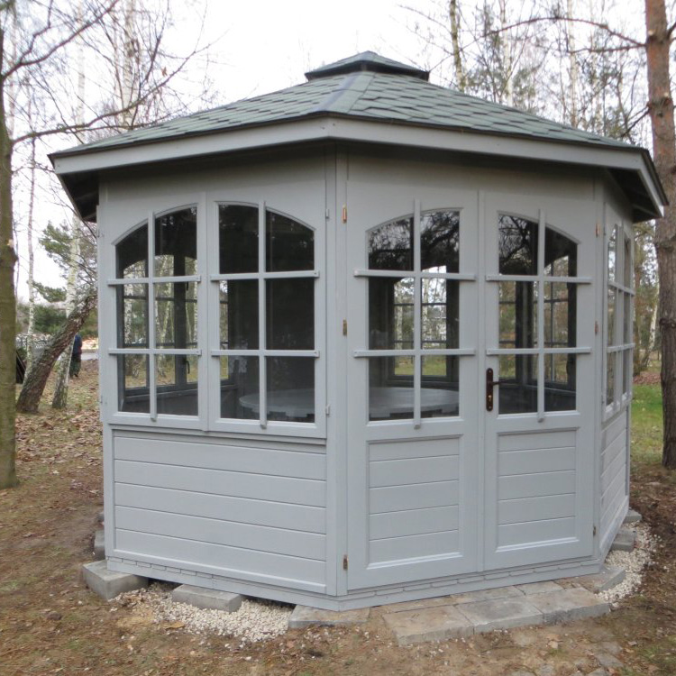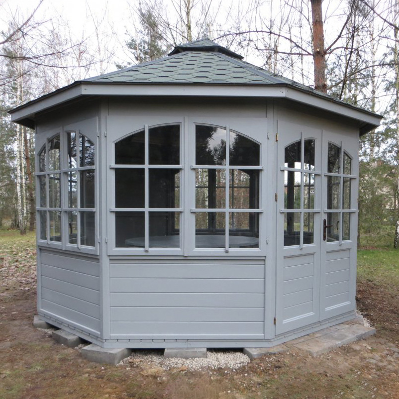 - Výjimečný styl a zasklení: Altán OKTAGON je navržen s důrazem na estetiku a funkčnost, jeho elegantní zasklení umožňuje celoroční užívání.