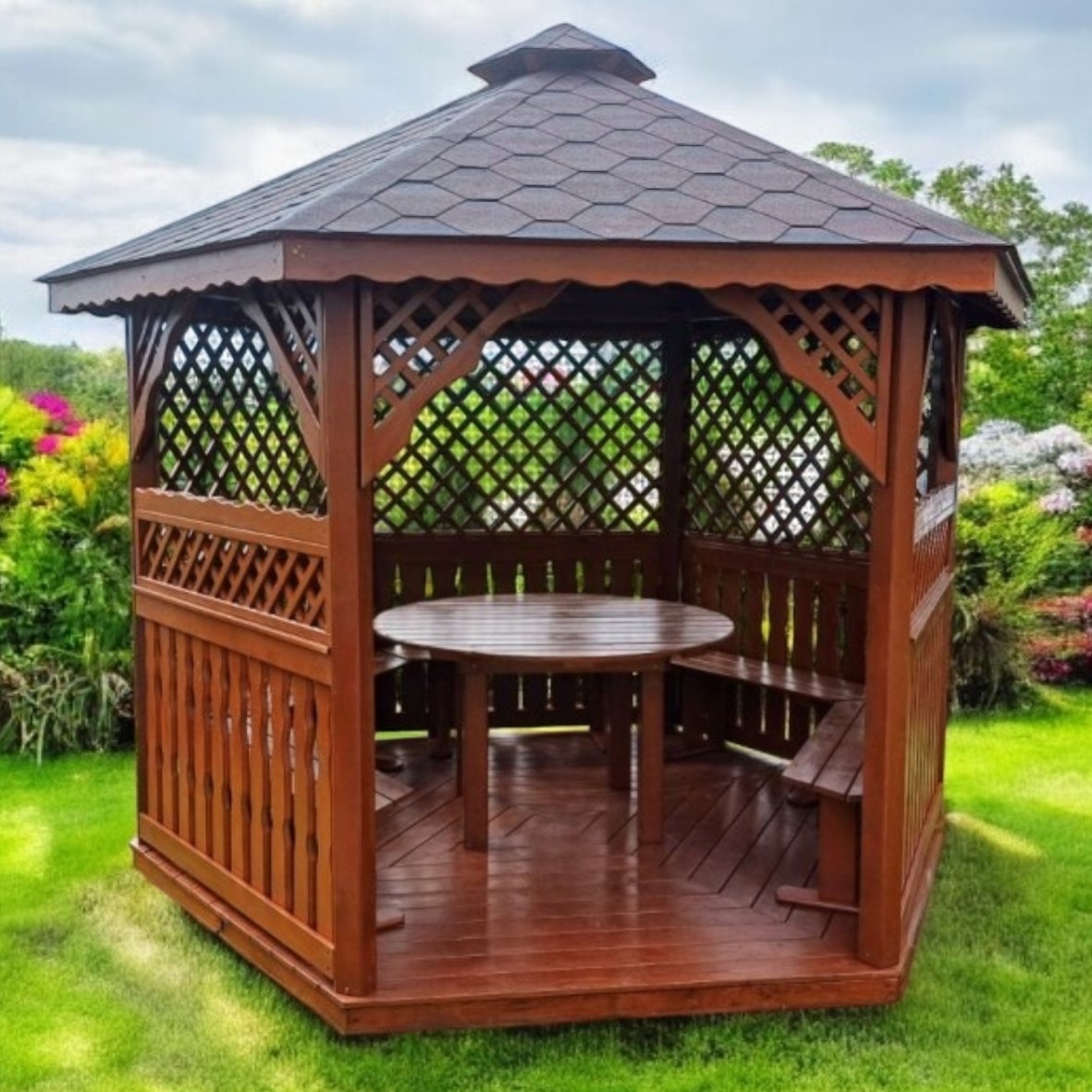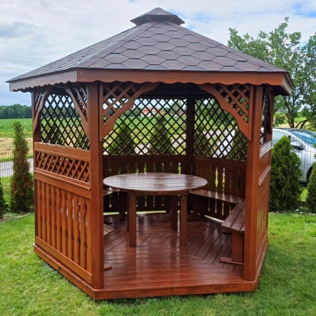 Domů/Zahradní architektura/Pergoly a altány/Altány/Dřevěný altán šestistranný B2a