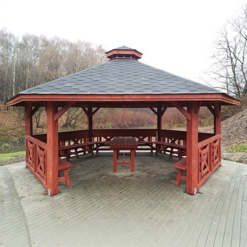 Každý altán je pečlivě zpracován s důrazem na detail a odolnost. Střecha je vyrobena z masivního dřeva a standardně pokryta bitumenovými taškami, které jsou již v základní ceně. Na výběr máte ze čtyř barevných variant: