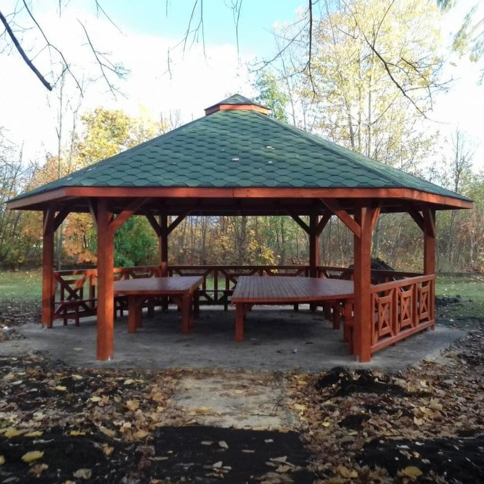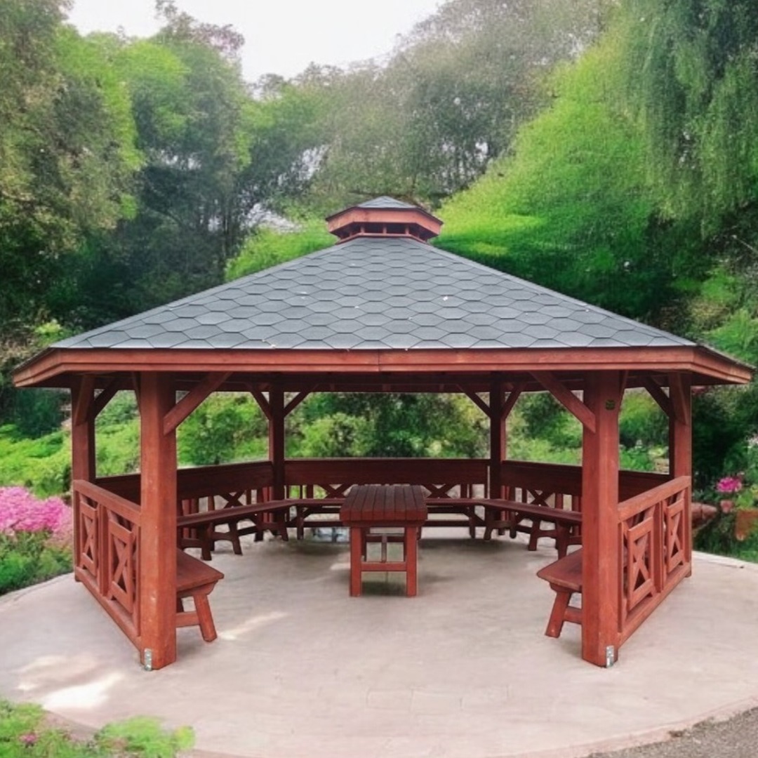 Dopřejte si luxusní a praktické rozšíření vašeho venkovního prostoru s naším dřevěným altánem šestistranným C5a Ø6m. Tento impozantní altán je navržen tak, aby poskytoval nejen estetickou krásu, ale i funkční útočiště pro relaxaci, rodinná setkání či oslavy. Jeho robustní konstrukce a kvalitní materiály zaručují dlouhodobou spokojenost a minimální nároky na údržbu.