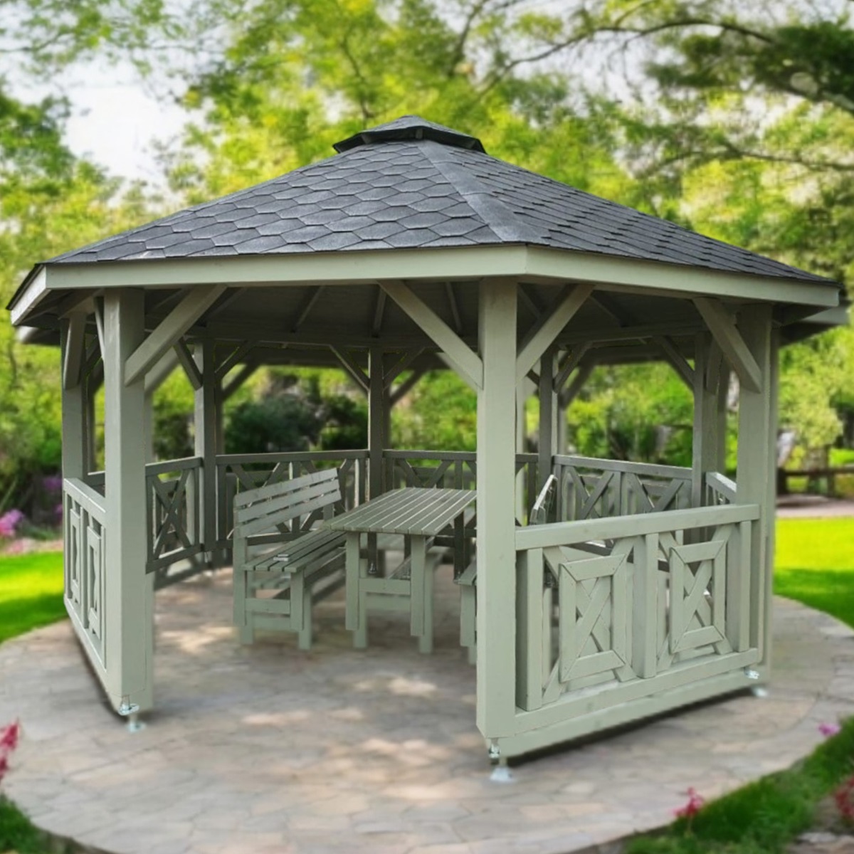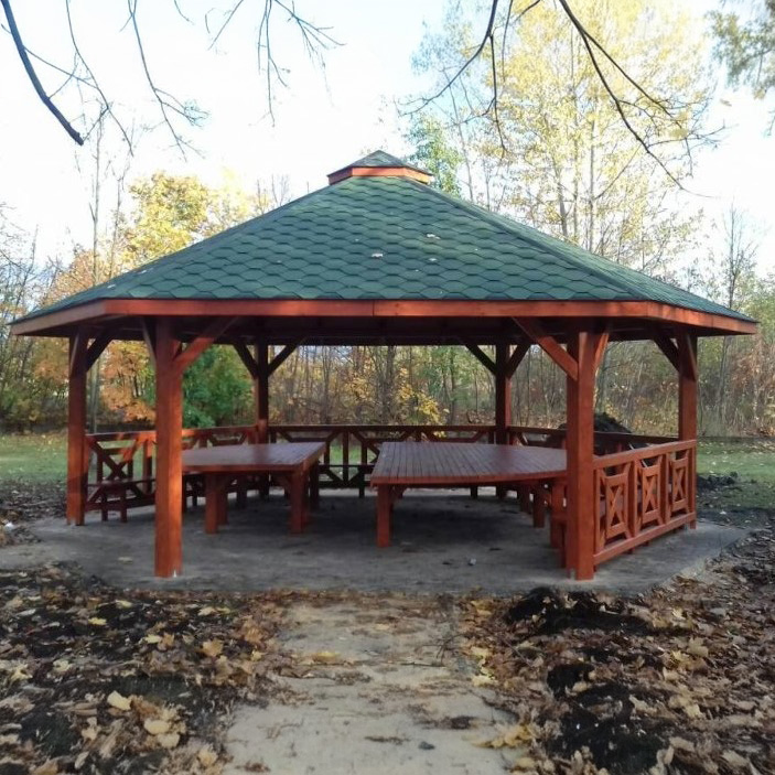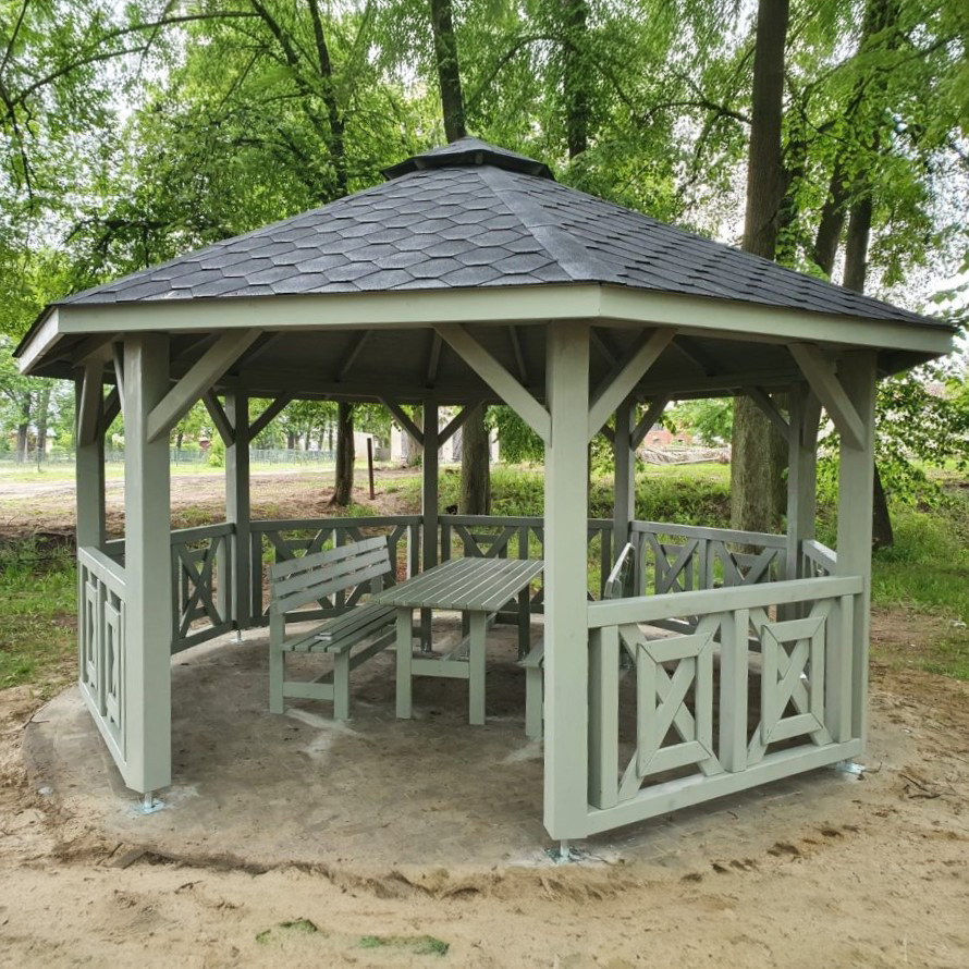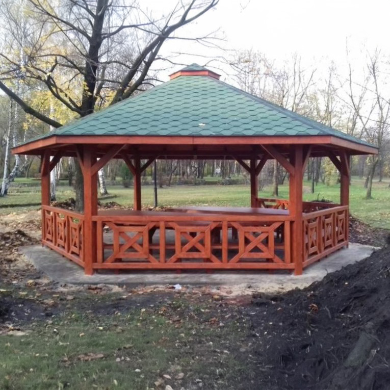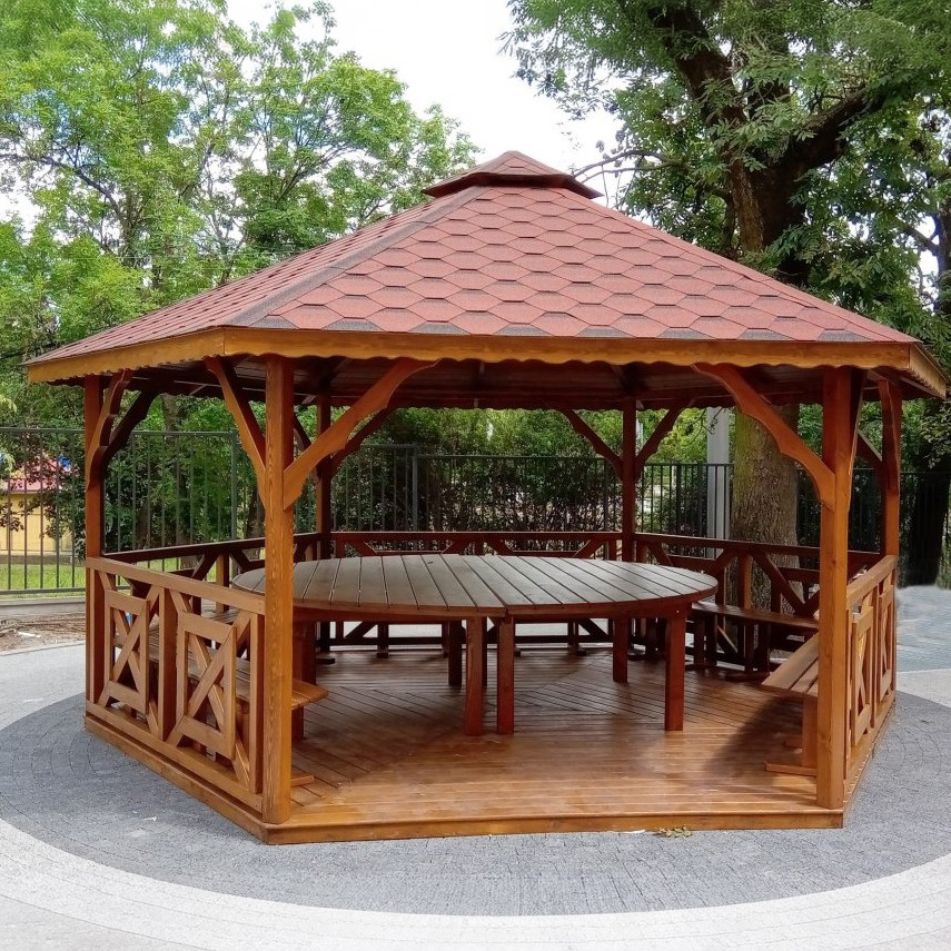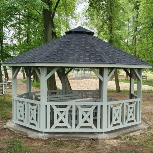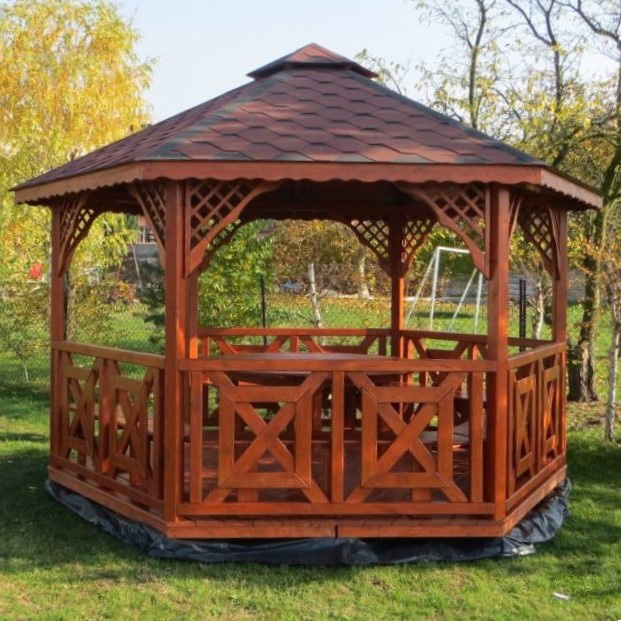 - Je v ceně altánu zahrnuta podlaha a nábytek?Ano, u většiny altánů (Ø3,2m, Ø3,9m, Ø5m) je v ceně zahrnuta dřevěná podlaha a nábytek (stůl + 5 lavic). Pro altán Ø6m se tato výbava nevztahuje.