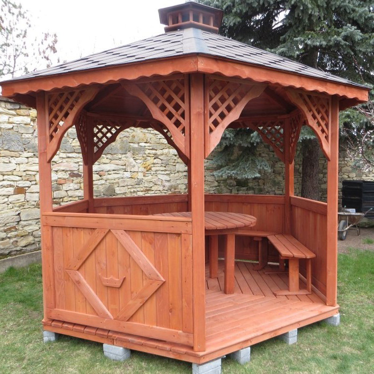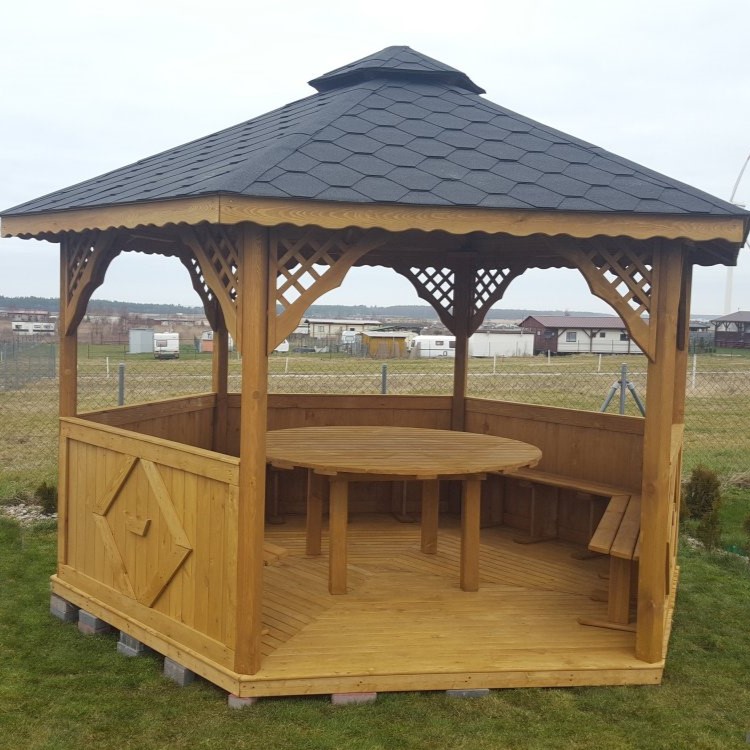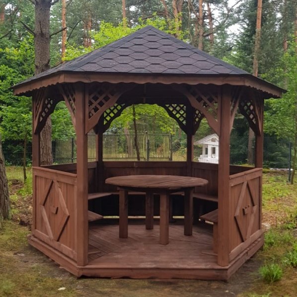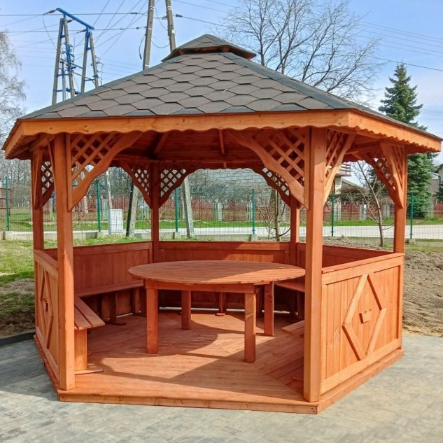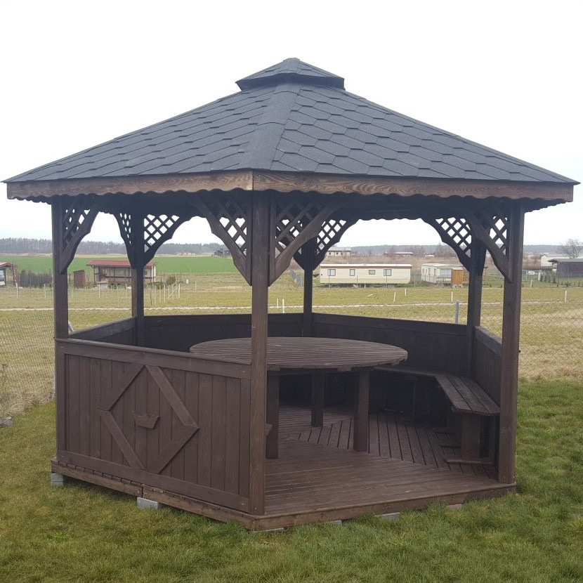 Náš Dřevěný altán šestistranný D3 je pečlivě navržen tak, aby poskytoval nejen estetickou krásu, ale i dlouhodobou funkčnost a odolnost. Vyrábíme jej z certifikovaného severského smrku, který je známý svou pevností a dlouhou životností. Díky tomu si můžete být jisti, že váš altán vydrží minimálně 20-30 let s jen mírnou údržbou přibližně jednou za deset let.