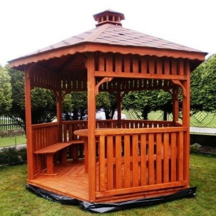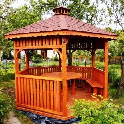 Pro altány o průměru 3,2m, 3,9m a 5m je dřevěná podlaha a nábytek (stůl + 5 volně stojících lavic) zahrnut v ceně ZDARMA, což vám umožní okamžité užívání.