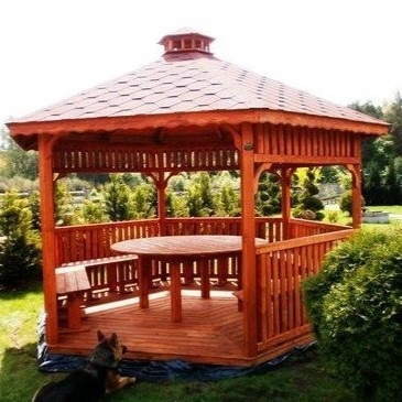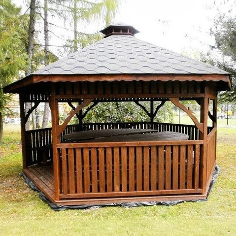 Věnujeme velkou pozornost detailům, a proto pro natření altánu používáme ekologické, vodou ředitelné barvy. Pro povrchovou úpravu nabízíme tenkovrstvou vodou ředitelnou lazuru vlastní výroby, která prokazatelně prodlužuje životnost dřeva a zvyšuje jeho odolnost proti povětrnostním vlivům. Naše lazury zvýrazňují přirozenou kresbu dřeva a zajišťují velmi snadnou následnou údržbu bez nutnosti broušení. Můžete si vybrat z široké palety barev pro hlavní konstrukci a kombinovat ji s druhou barvou pro detaily jako okenní rámy nebo spojovací trámy.Střecha altánu je vyrobena z masivního dřeva a standardně pokryta bitumenovým šindelem, který je již v základní ceně. Na výběr máte ze čtyř barev šindele: