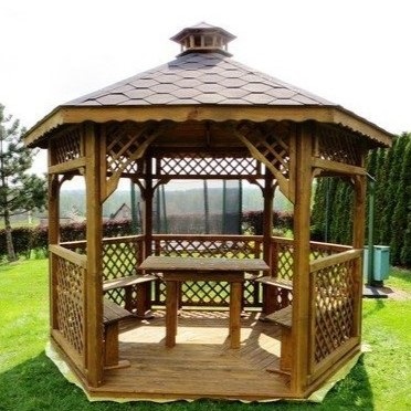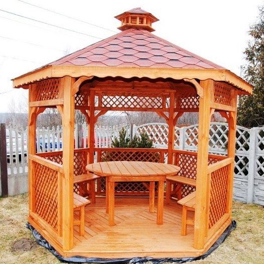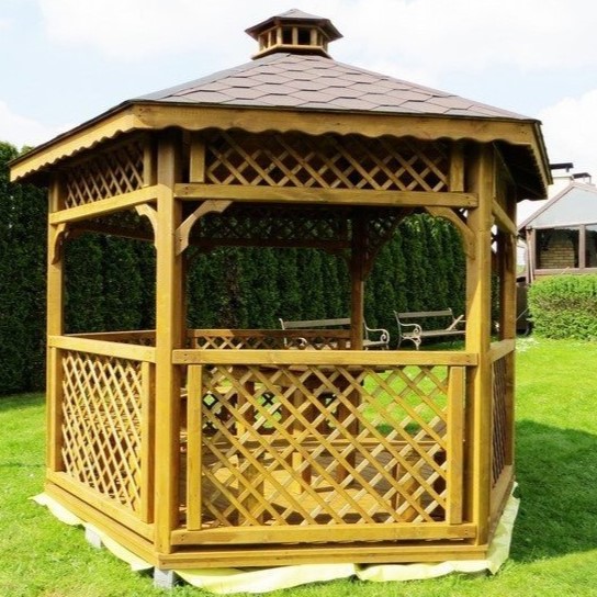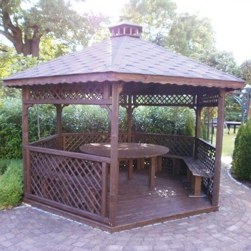 Domů/Zahradní architektura/Pergoly a altány/Altány/Dřevěný altán šestistranný F4a