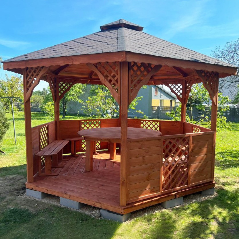 Náš šestistranný altán I8 představuje dokonalé spojení elegance, funkčnosti a dlouhé životnosti. Je pečlivě vyroben z certifikovaného severského smrku, který je známý svou vysokou odolností a přirozenou krásou. Díky kvalitním materiálům a preciznímu zpracování se můžete těšit na bezstarostné užívání po mnoho let, s odhadovanou životností 20-30 let při minimální údržbě.
