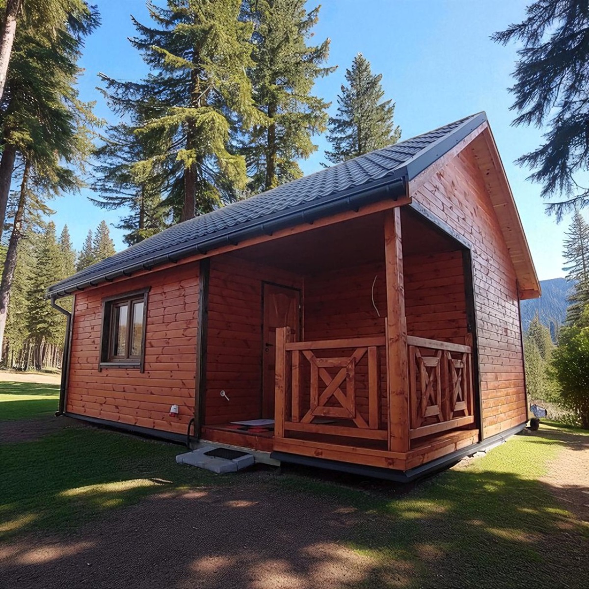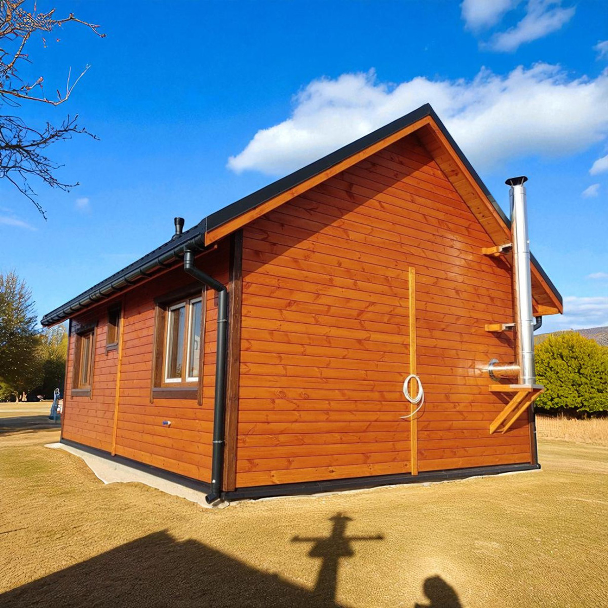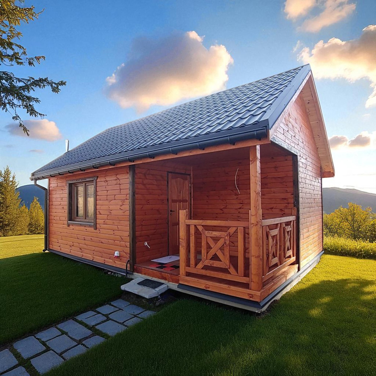 Dřevěný dům KAŠTAN je dům s celkovou zastavěnou plochou od 30m2 a vyrábíme ho v dalších 4 velikostech. Jedná se o dřevostavbu, která je vhodná jako chata, prázdninový dům nebo pro celoroční použití. Dům dodáváme v základním rozměru 5x6m včetně terasy, podlahová plocha 19,60m2. Cenu máme díky předpřipraveným dílcům nastavenou doopravdy akčně.