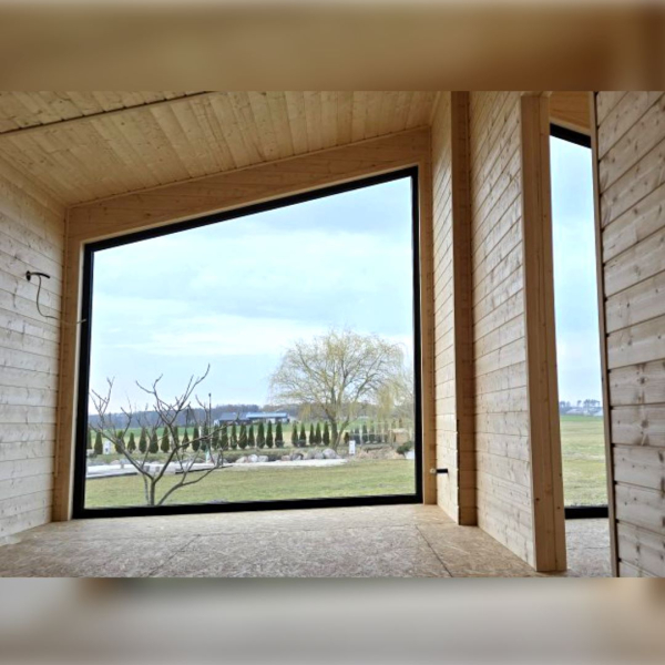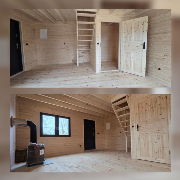 5x3m – Nosné sloupy -4 × 9 cm v rozestupu po 50 cm / Výška – 2,20 m boční stěny (3,69 m v hřebeni) / Podlaha – z dřevěných podlahových prken o tloušťce 21 mm / Podlahové nosníky – 4 × 9 cm v rozestupu po 70 cm / Dveře – 3 dveře z masivního dřeva s klikou a zámkem – vnější: 80 × 205 cm – vnitřní: 80 × 200 cm / Okenní otvor – 3 okna s izolačním dvojsklem a okenicemi – 135 × 110 cm – 50 × 50 cm