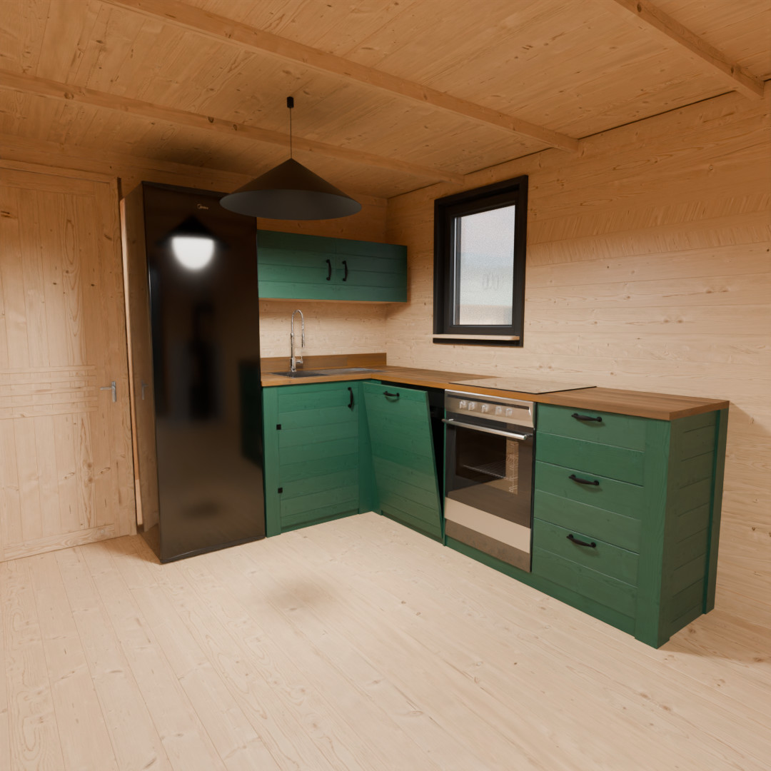 Součástí ceny je také 3D projekt ZDARMA. V rámci ceny nabízíme možnost jakýchkoli změn v obložení, umístění dveří a poměru Thermowood/plech na klik dle Vašeho návrhu. V ceně jsou rovněž úpravy vnitřního uspořádání podle Vašich požadavků.