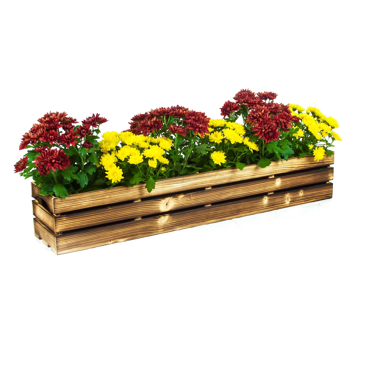Tento truhlík je dodáván v krásné opalované barvě. Pokud si přejete zachovat nebo změnit jeho vzhled, můžete si k němu objednat plechovku ekologické barvy ve stejném odstínu pro ošetření, anebo zvolit tmavší odstín pro kompletní změnu barvy. Máte také možnost si truhlík natřít sami.