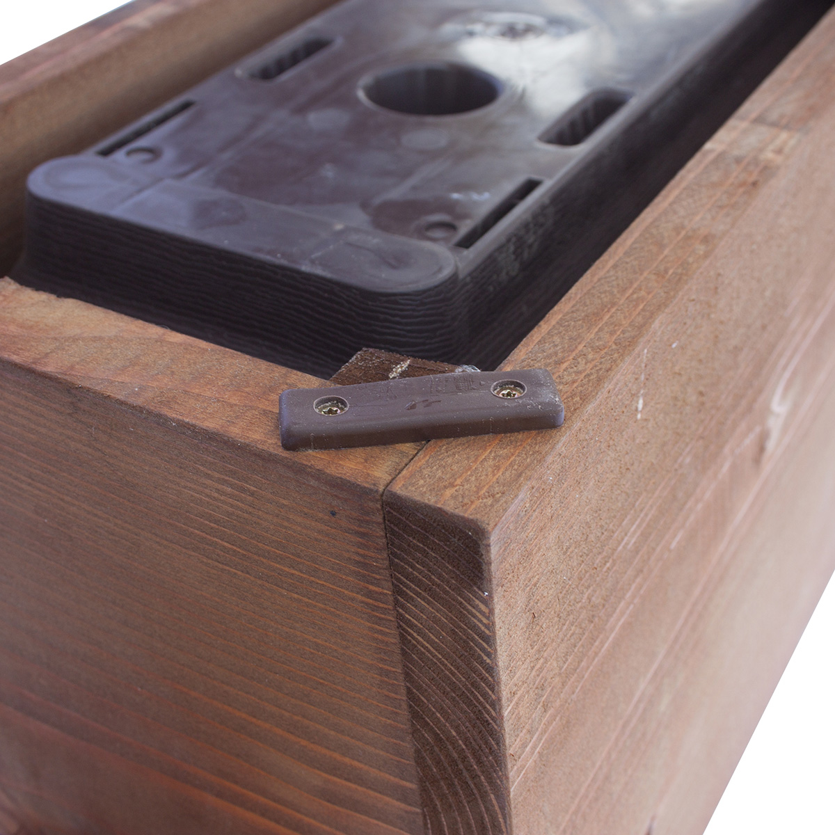 Truhlík je vyroben z 14 mm tlustého masivu severského smrku a ošetřen přírodními oleji pro celoroční venkovní použití. Před vlhkem ho navíc chrání plastová vložka a plastové nožičky.