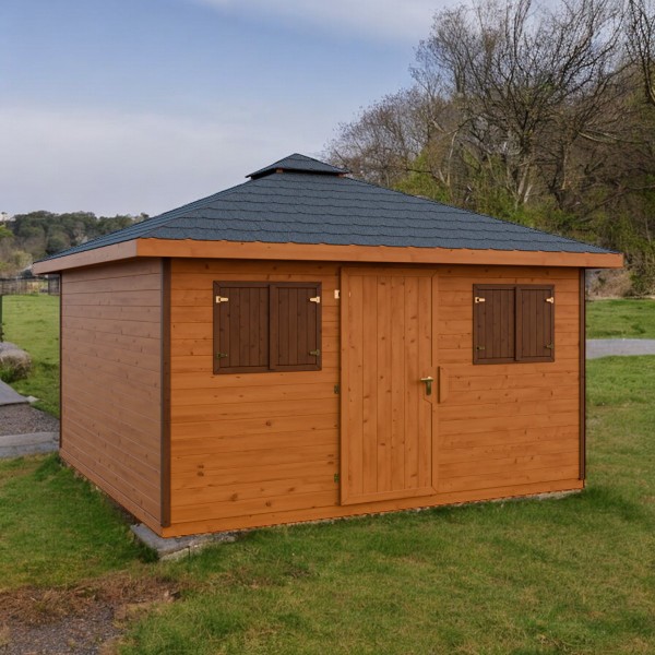 Základní výměra zahradního domku POHODA 2 je 4×3 metry. Zahradní domky vyrábíme z vysoce kvalitního smrkového dřeva (severský smrk) nebo borovicového dřeva s tlakovou impregnací proti vlhkosti. Jsme výrobci a možné je tedy vše. U zahradních domků nabízíme nekonečné možnosti velikostí, doplňků a různých rozšíření.