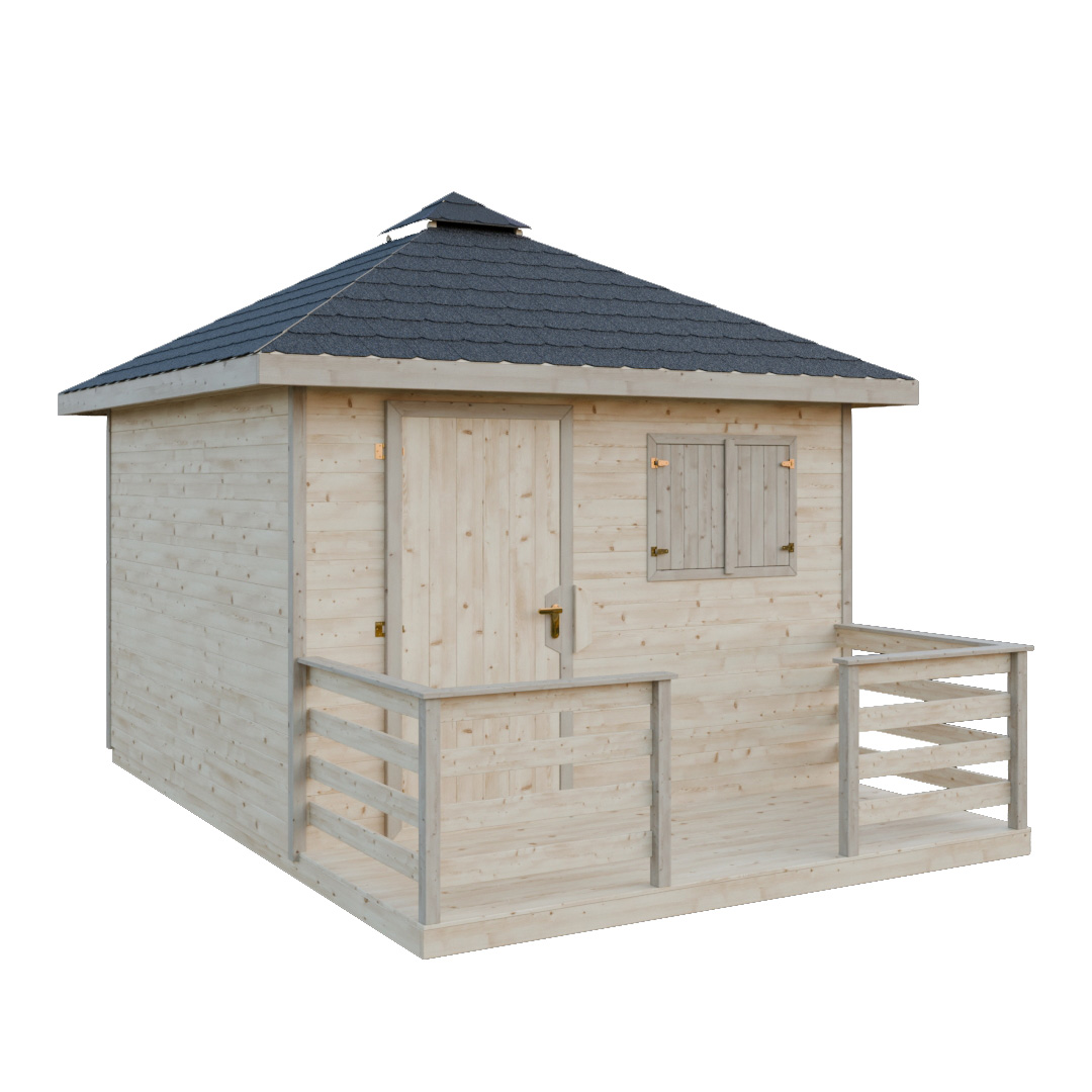 Domek je vyráběn z vysoce kvalitního smrkového dřeva (severský smrk) nebo borovicového dřeva, které je tlakově impregnováno proti vlhkosti.