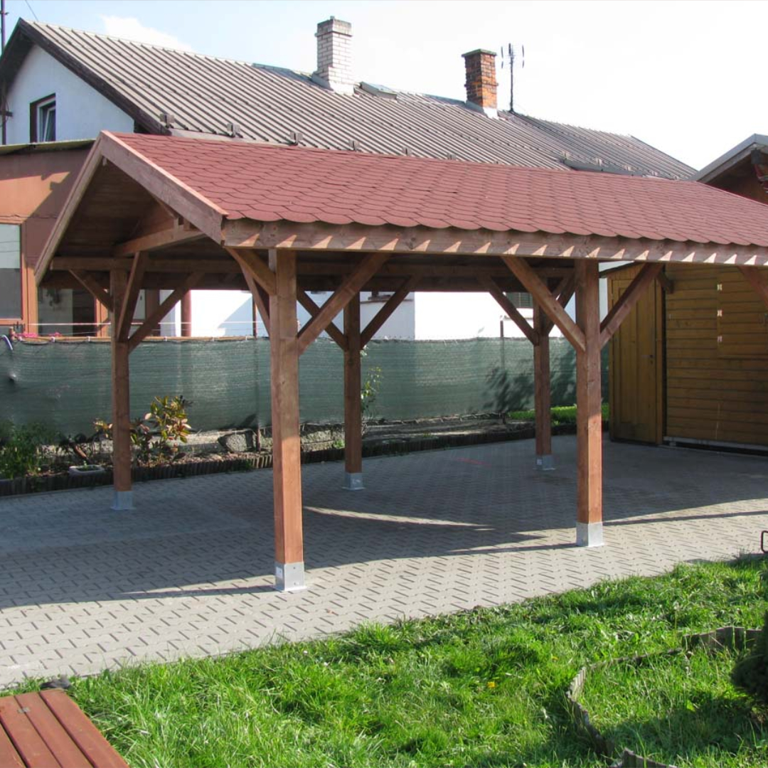 - Individuální rozměry: Rozměr mezi stojkami je optimální 3 metry, ale na přání lze rozměr natáhnout až na 7 metrů. Vnitřní rozměr stojek je o 20 cm menší než šířka x hloubka střechy.
