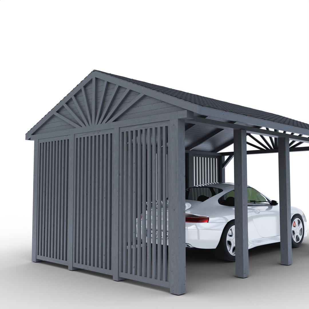 • Zavírání garáže: Doplňte stání o sekvenční vrata nebo dřevěná dvoukřídlá vrata.