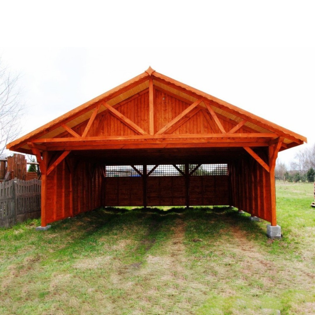 - Z jakých materiálů je garážové stání vyrobeno? Garážové stání je vyrobeno z masivních certifikovaných smrkových hranolů 12x12cm a krokví 6x12cm, se střechou ze 100% masivního dřeva.