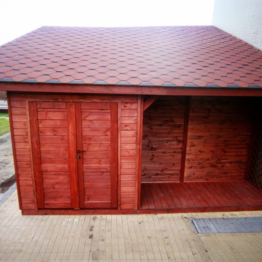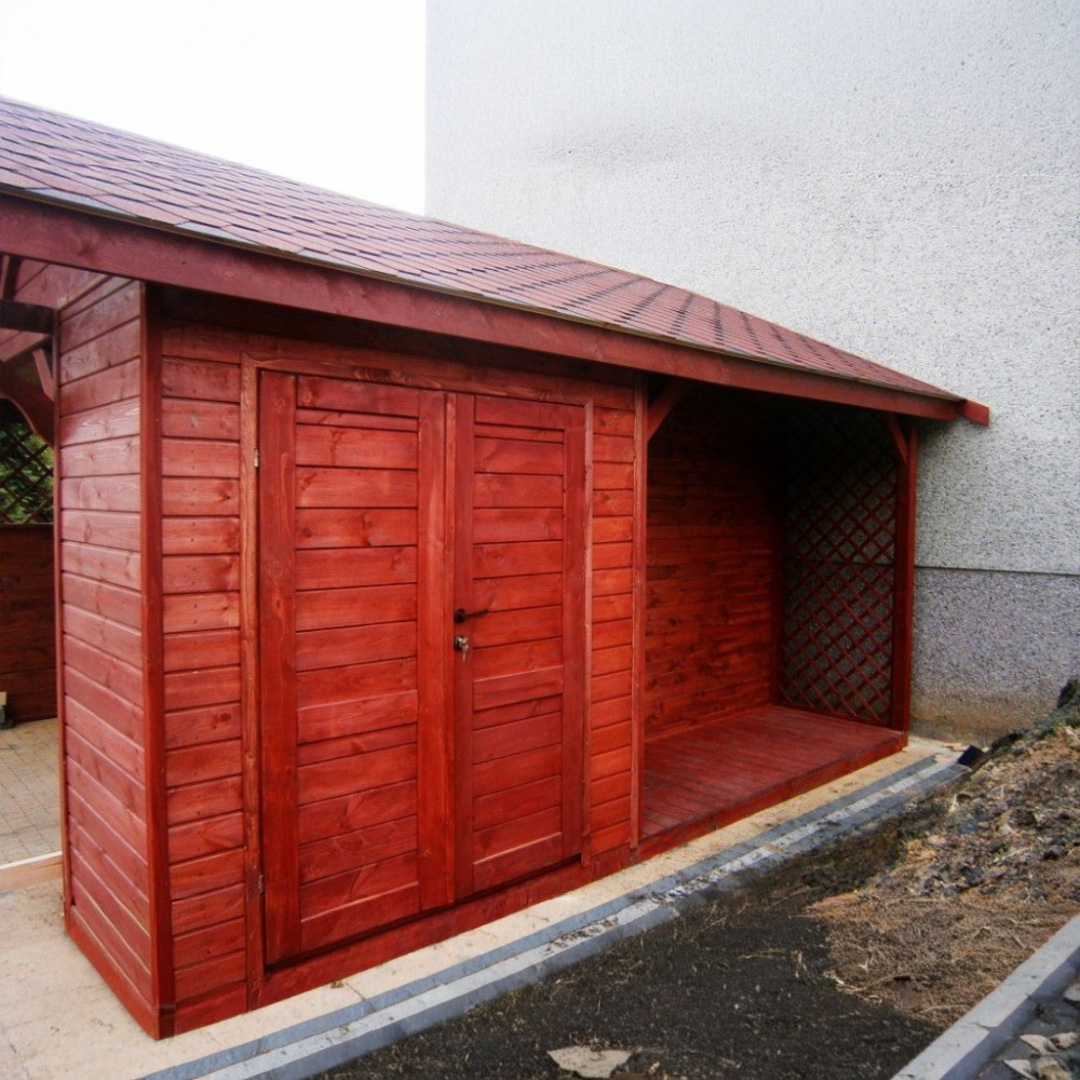 Naše garážové stání se skladem a dřevníkem je ztělesněním trvanlivosti a spolehlivosti. Pro výrobu používáme výhradně masivní certifikované smrkové hranoly a fošny (hranoly 12x12cm, krokve 6x12cm), které jsou speciálně zvoleny pro svou schopnost odolávat náročným venkovním povětrnostním podmínkám. Standardní střecha je vyrobena ze 100% masivního dřeva a pokryta asfaltovou lepenkou, což zajišťuje dlouhodobou ochranu. Součástí dodávky je kompletní konstrukce, střecha, veškerý spojovací materiál, podrobný návod k montáži a profesionální hloubkový nátěr dle vašeho přání. Varianta se skladem a dřevníkem nabízí praktické řešení pro uskladnění všeho potřebného.
