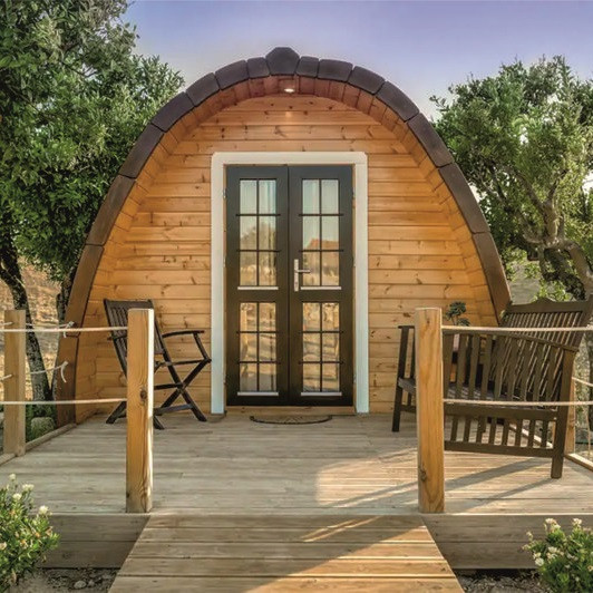 Každá kempingová chatka je vyrobena z nejkvalitnějších materiálů, což zaručuje dlouhou životnost a odolnost. Její unikátní tvar nejenže skvěle vypadá, ale také zajišťuje efektivní využití vnitřního prostoru. Střecha je zhotovena z masivního dřeva a pokryta asfaltovým šindelem, který je dostupný ve čtyřech barvách (červená, šedá, zelená, černá) bez vlivu na základní cenu. Tyto chatky skutečně nabízejí jedinečné kempingové ubytování, které posouvá zážitek z volného času na novou úroveň.
