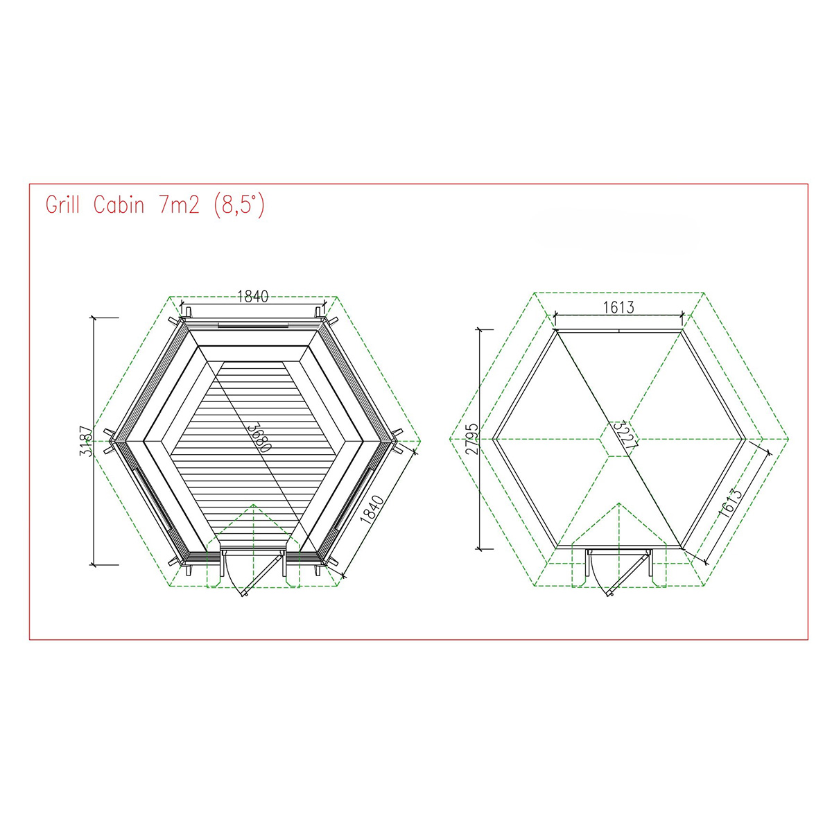 - Kvalitní podlaha: Podlaha z borovicových prken se spojem pero-drážka o tloušťce 28 mm dodává chatce robustnost a útulnost.