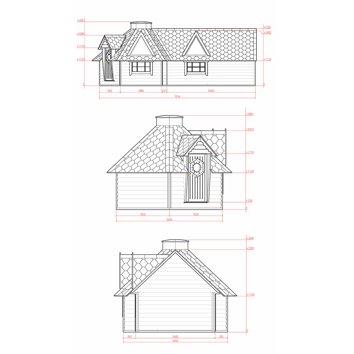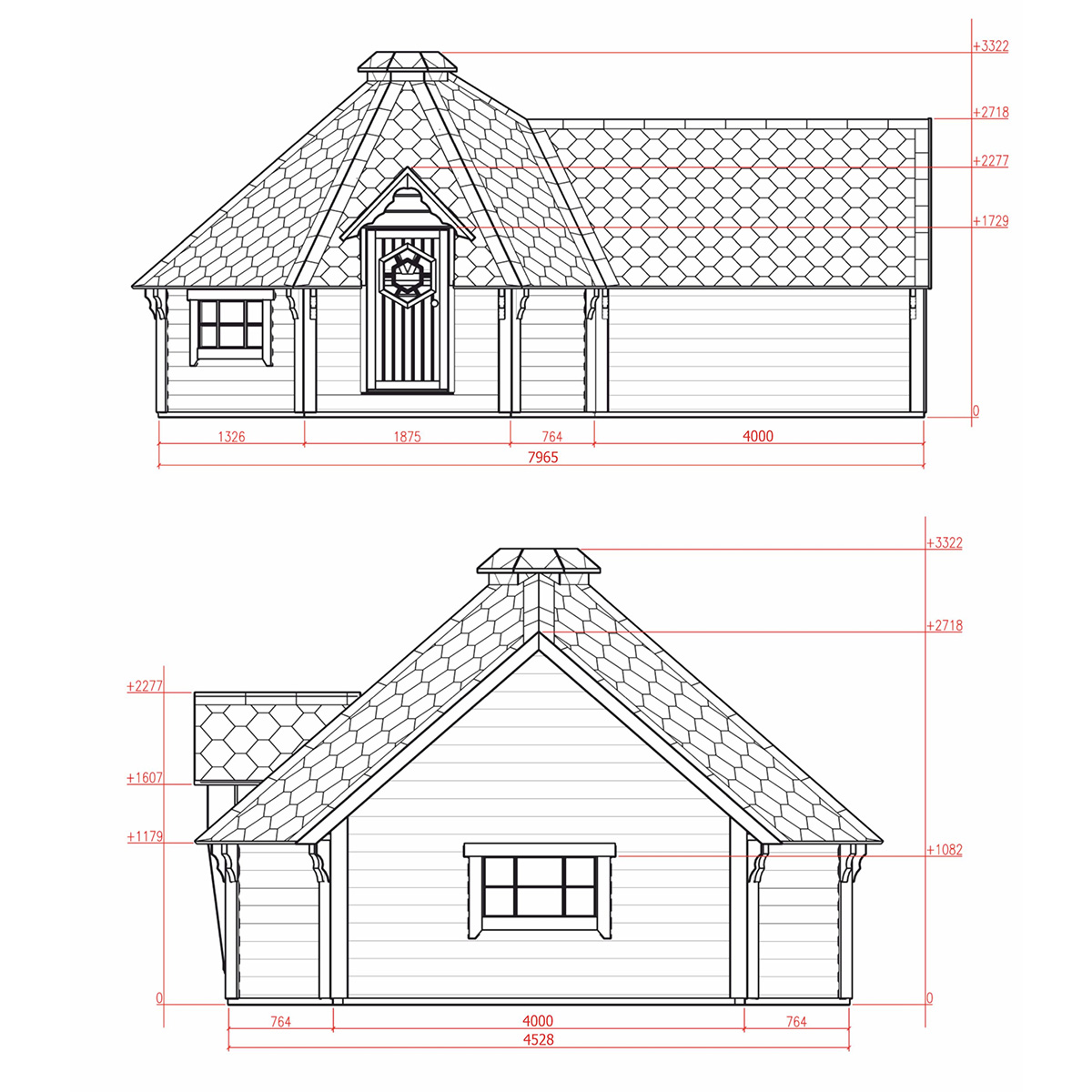 Střecha je vyrobena z masivního dřeva a pokryta asfaltovým šindelem, který je již v základní ceně. Na výběr máte ze 4 barev bitumenového šindele bez vlivu na cenu: červená, šedá, zelená, černá.