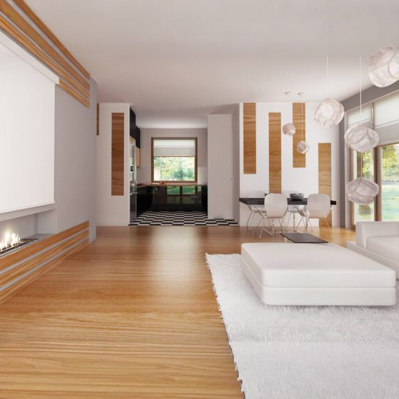 Levá část domu slouží jako denní zóna, pravá jako noční. Kuchyně je spojena s jídelnou a obývacím pokojem formou otevřeného prostoru (open space). Díky tomu je interiér vzdušný a prostorný a můžeme si naplno užívat reprezentativní obytnou plochu. Teplé světlo krbu nám navíc přinese mnoho příjemných chvil.