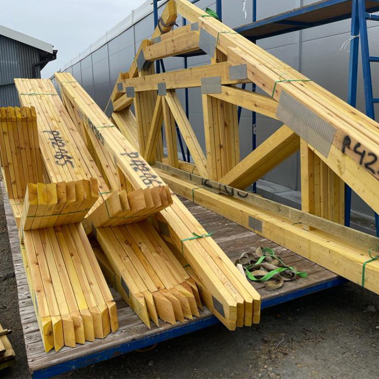 Fasáda je tvořena svislými lamelovými prvky, teplým dřevěným obkladem v zahradní části a omítkou v bílé a grafitové barvě na čelní straně domu.