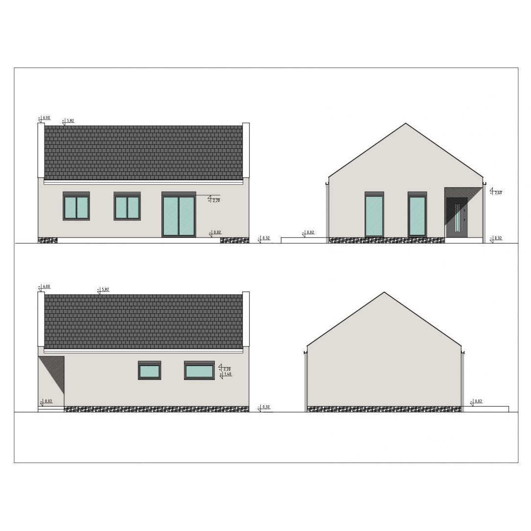 Úhledný, moderní jednopodlažní dům s jednoduchou konstrukcí na obdélníkovém půdorysu.