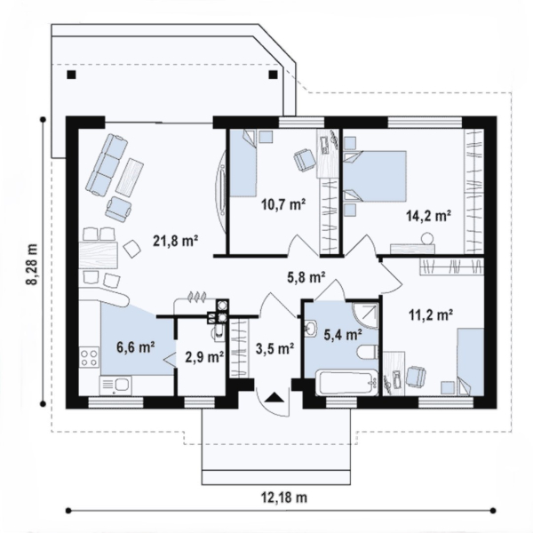 Vnitřní dispozice, rozdělení a velikosti nebo počet vnitřních prostor je možné upravit na přání a vytvořit tak například nové místnosti. Čas dodání se pohybuje okolo 6-8 týdnů od podpisu smlouvy.