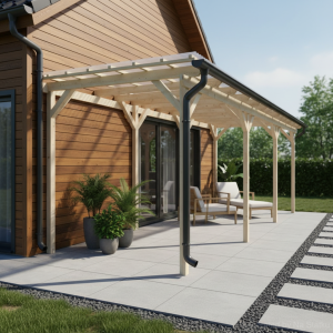 Konstrukce je připravena pro lehké zastřešení z polykarbonátu, vlnitého plastu nebo vlnitého plechu. Na přání lze dodat také lehké střešní dílce připravené na míru, včetně spojek a montážního materiálu. Pergola tak nabízí vysokou variabilitu a lze ji snadno sladit s technickými i estetickými požadavky konkrétní stavby.