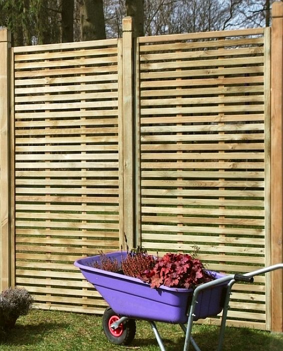 Plot s vodorovnými lamelami se krásně vyjímá také u modernější domů a zahrad.