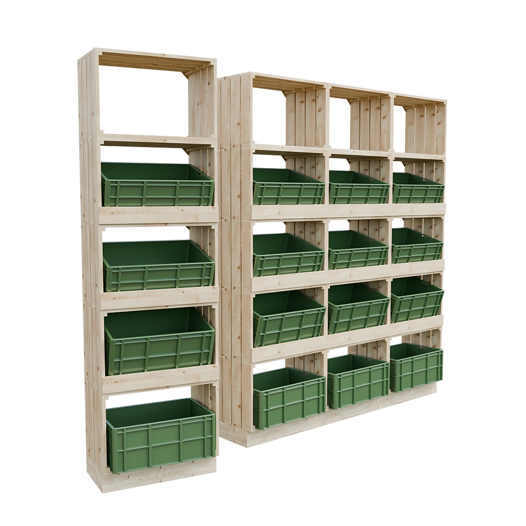 Regál BASIC na zeleninu je navržen jako základní stavební prvek pro efektivní a estetické vybavení jakékoliv prodejny. Díky našim bohatým zkušenostem z mnoha realizací jsme vyvinuli úložné díly o rozměrech 60x40x35 cm (šxvxh), které jsou ideální a univerzální pro prezentaci širokého spektra sortimentu, nejen zeleniny. Systém je plně kompatibilní a variabilní, což umožňuje snadnou změnu pozic a budoucí rozvoj vaší prodejny.