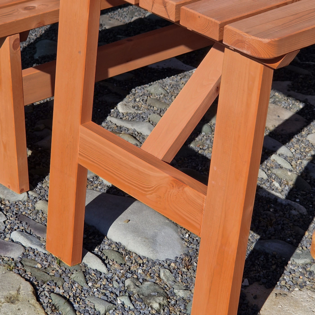 Základem našeho zahradního nábytku je robustní konstrukce založená na tradičním spojení dřeva do dřeva, které je pro ještě větší pevnost doplněno nerezovými vruty. Tato promyšlená technologie zaručuje výjimečnou stabilitu a dlouhodobou životnost, díky níž se můžete spolehnout na odolnost nábytku i v náročných venkovních podmínkách.