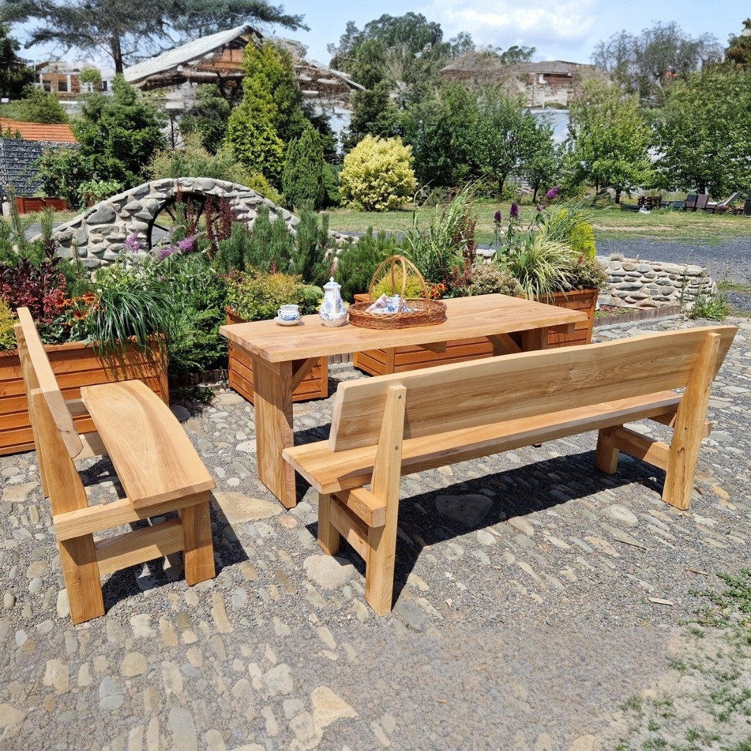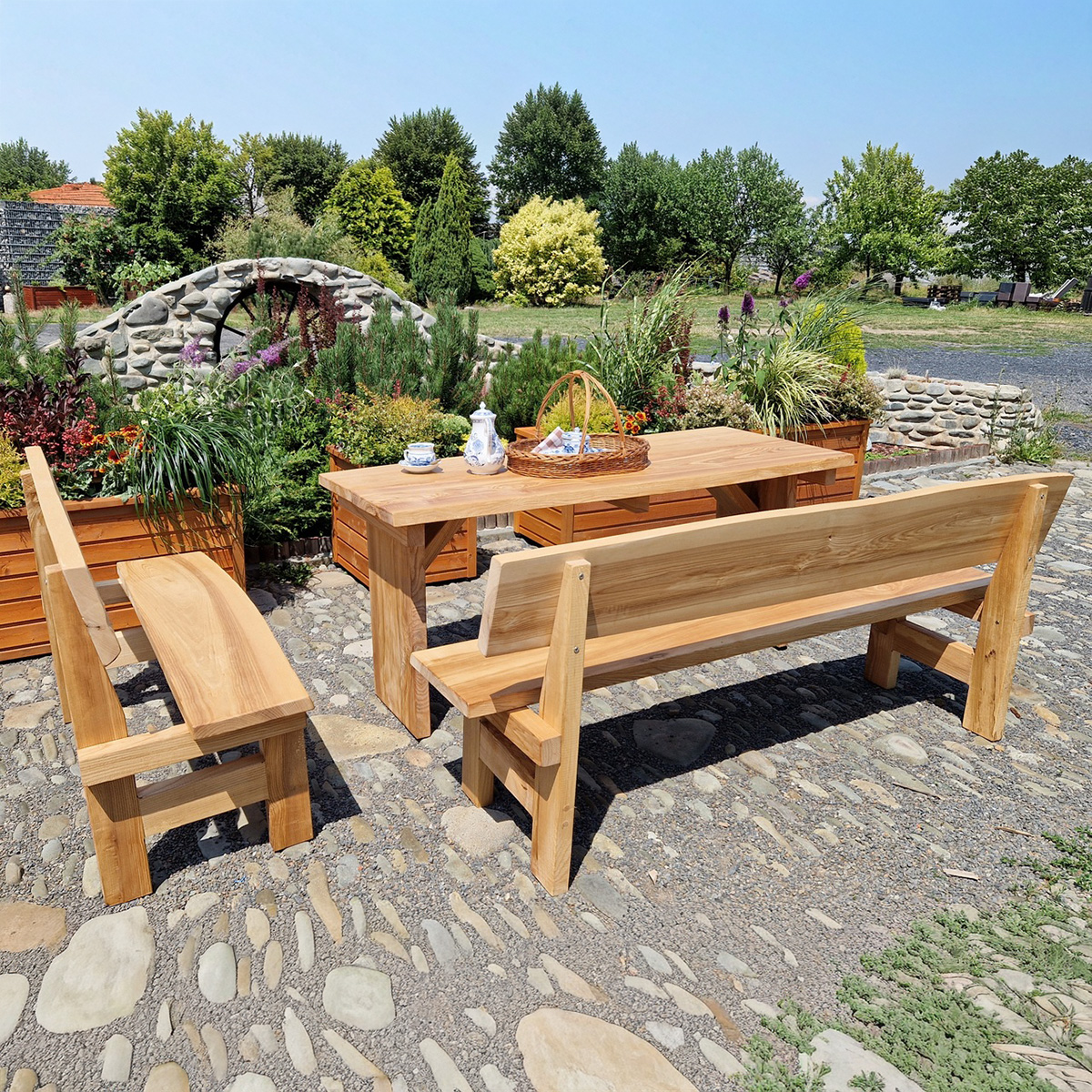 Představujeme vám exkluzivní set zahradního nábytku, který je synonymem pro kvalitu a odolnost. Každý kus je ručně vyroben z tvrdého jasanového dřeva o působivé tloušťce 35 mm, což zaručuje jeho robustnost a stabilitu. Naše lavičky se pyšní pevnou konstrukcí založenou na tradičním spojení dřeva do dřeva, doplněném o nerezové vruty pro ještě větší pevnost. Díky této technologii se můžete spolehnout na opravdu dlouhodobou životnost a výjimečnou odolnost nábytku vůči povětrnostním vlivům.