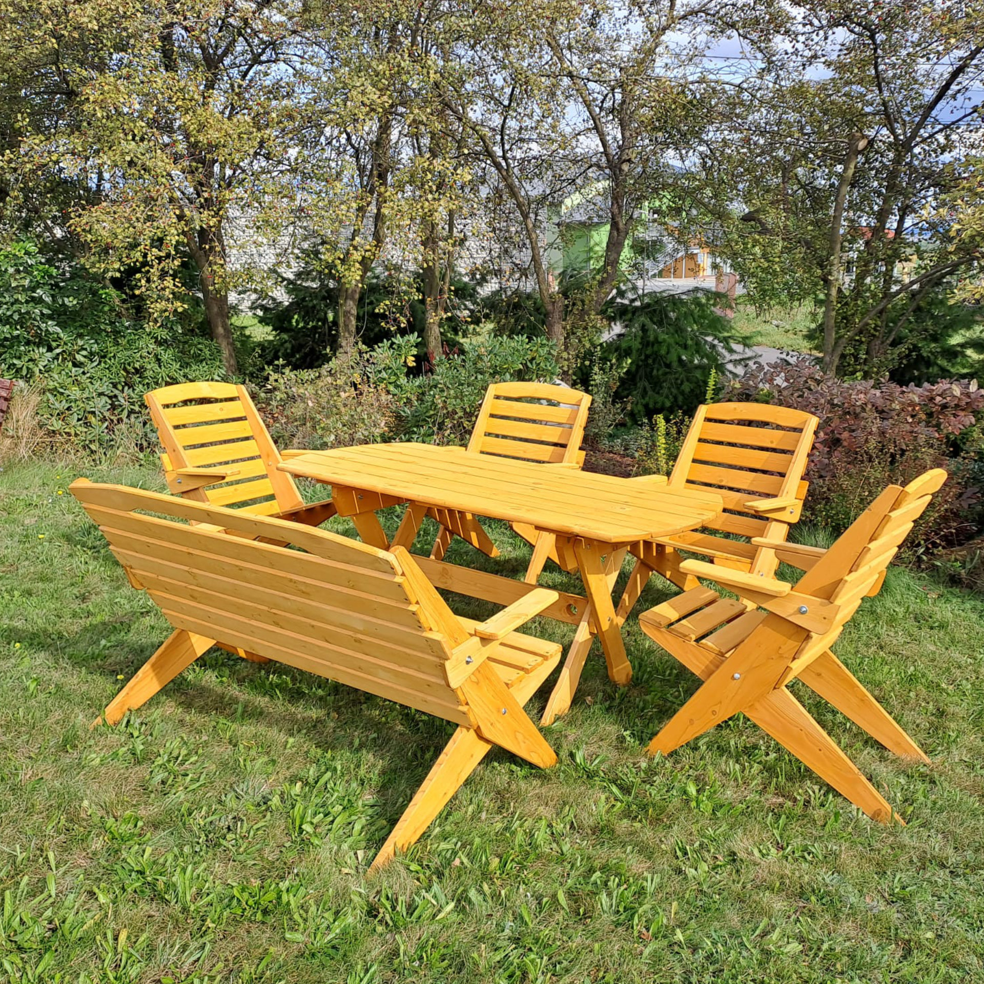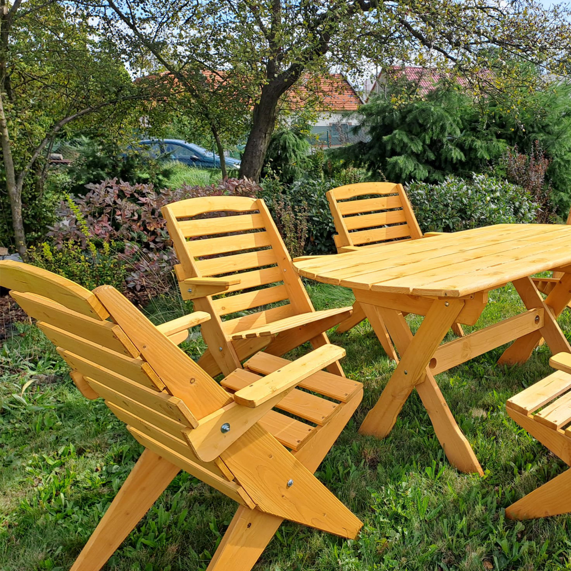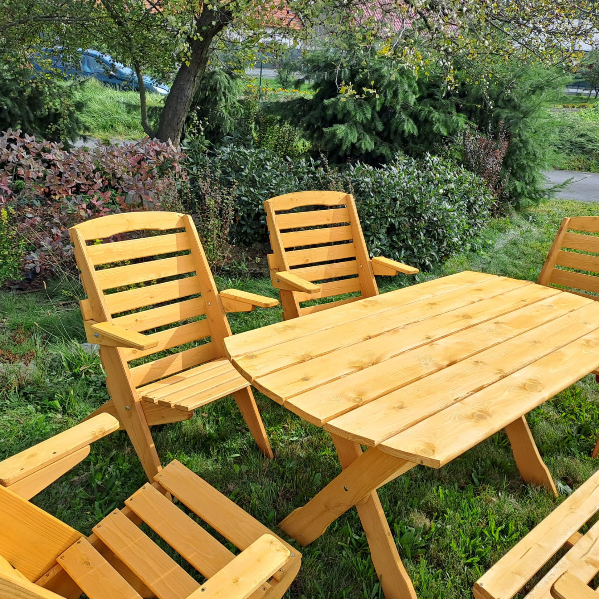 Ručně vyrobený zahradní nábytek z borovicového dřeva. Výhodou našeho nábytku je pevná konstrukce založená na spojení dřeva do dřeva. Konstrukce je pro ještě větší pevnost spojena také nerezovými vruty. Díky použité technologii má náš zahradní nábytek opravdu dlouhodobou životnost a výjimečnou pevnost. Produkty lze zakoupit také jednotlivě.