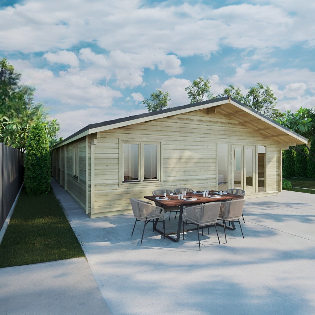 Tento srub splňuje vysoké standardy pro rezidenční sruby, proto srub zahrnuje izolované podlahy, izolovanou střechu, okna a dveře obytného typu s 24mm trojitým zasklením plněným argonem a 5-bodovým zámkem, ocelové střešní tašky, hydroizolační fólie na střeše a základech.