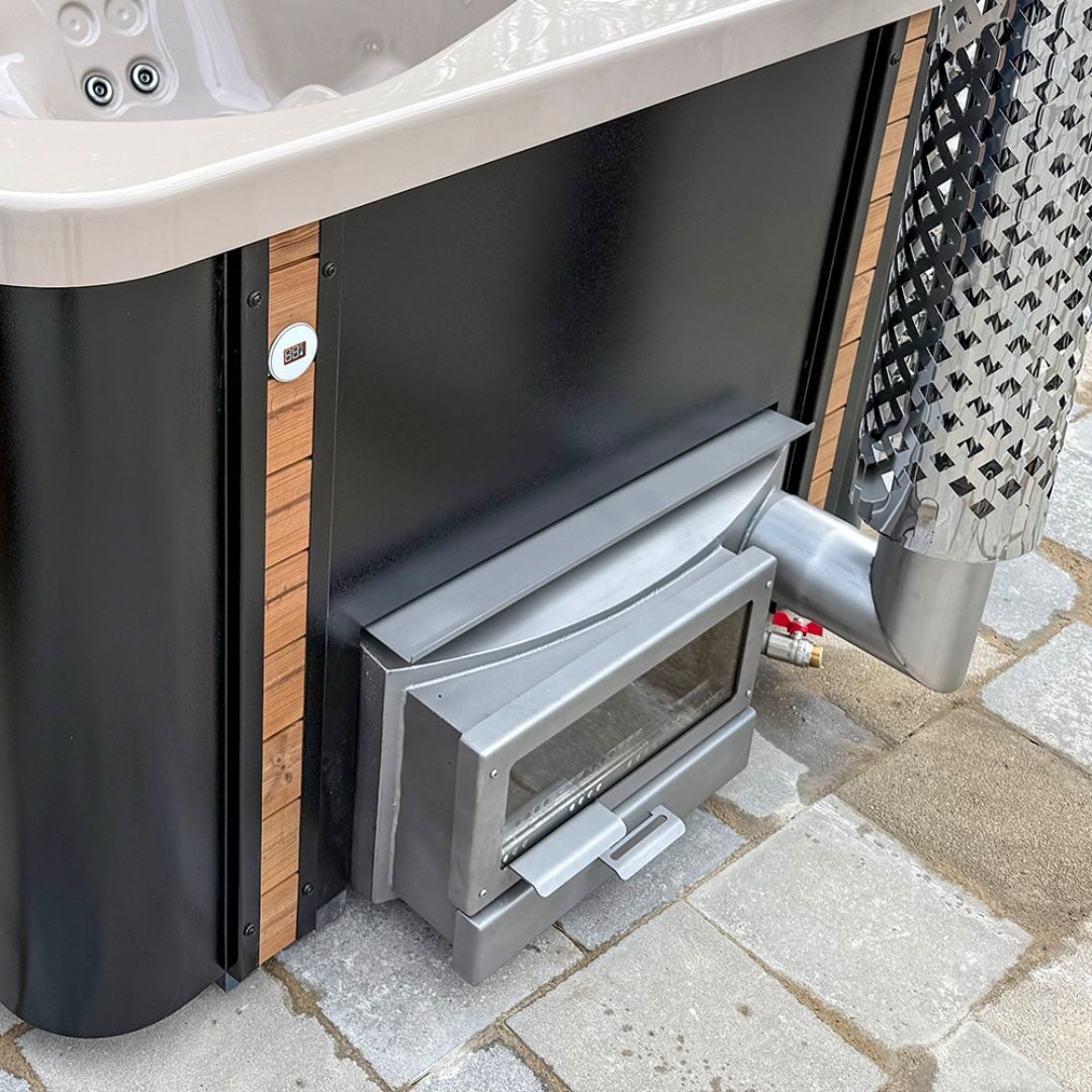 Externí topeniště (Základ) – Tyto kamna pro ohřev vody jsou umístěny mimo tělo vířivky a jsou vyrobeny z nerezové oceli AISI 304. Ta poskytuje výbornou odolnost a je ideální pro běžné použití.