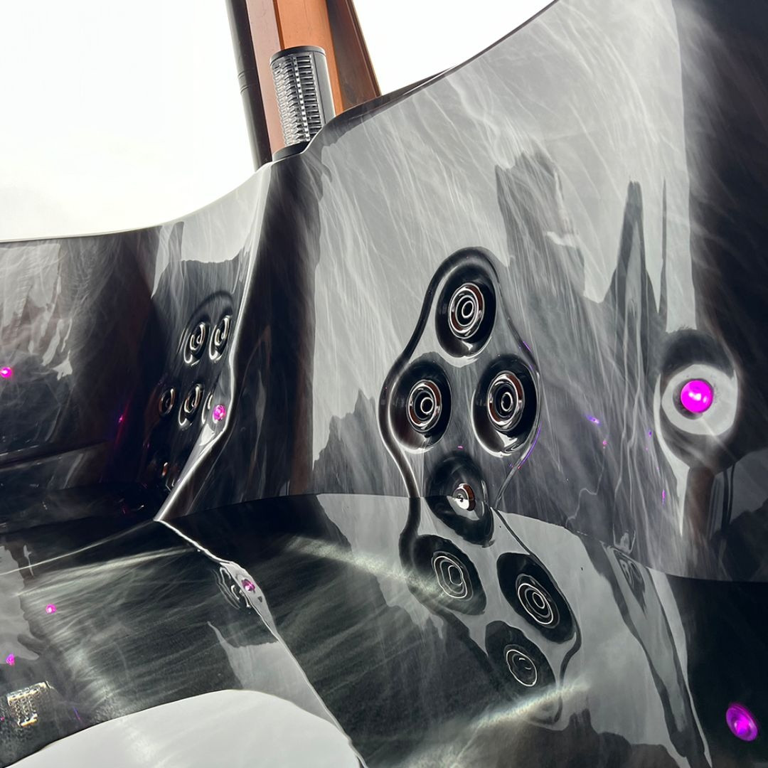 K dispozici jsou například písková filtrace pro čistou a hygienickou vodu, LED osvětlení s pneumatickým ovládáním pro vytvoření relaxační atmosféry, elektrický teploměr pro snadnou kontrolu teploty vody nebo ergonomická opěrka hlavy pro maximální pohodlí při koupání.